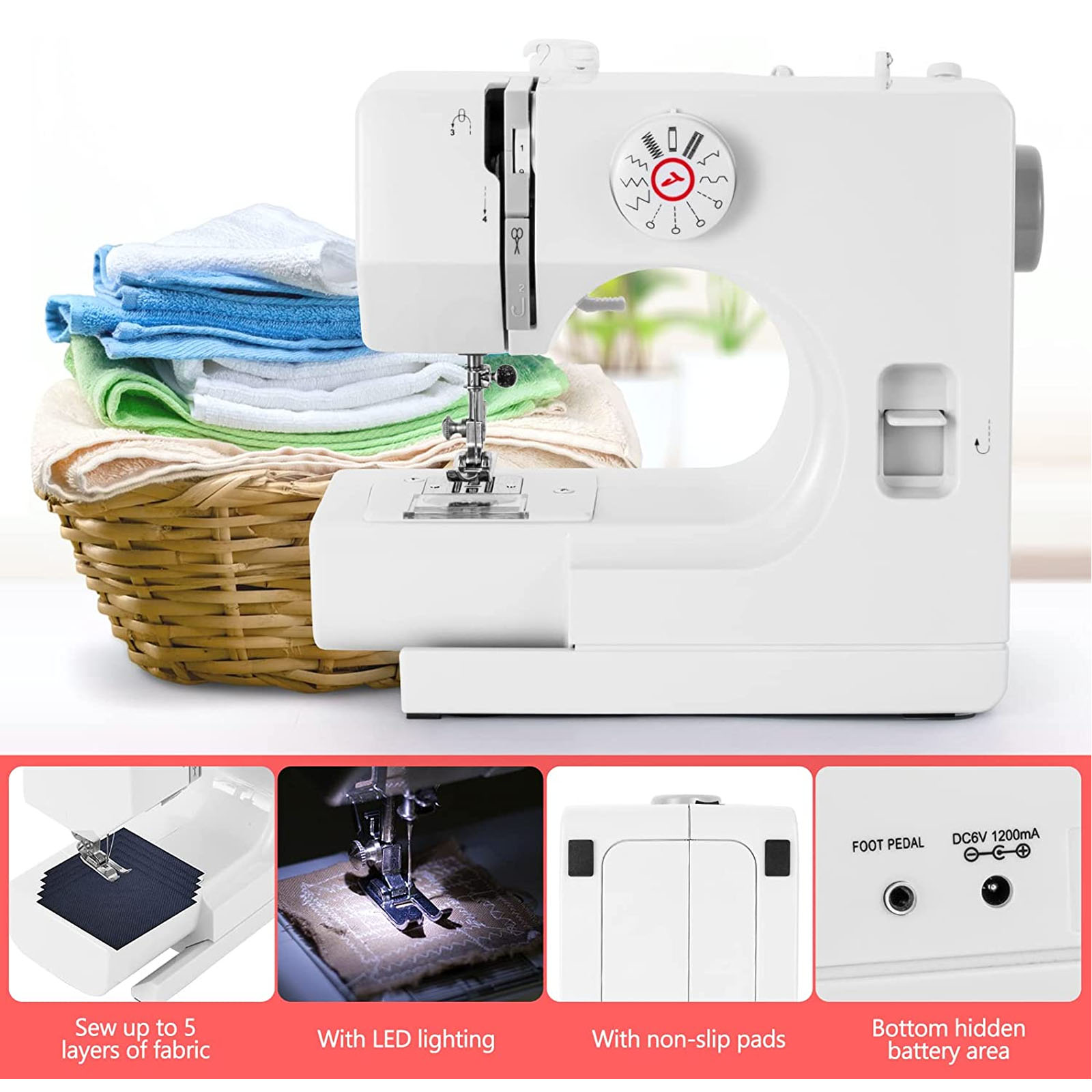VIFERR Sewing Machine Portable Sewing Machine 38 Stitches Extension Table Pedal Accessory for Beginners