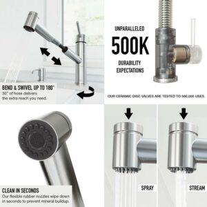 – EASY TO CLEAN: the nozzle resists mineral buildup, making this kitchen faucet easy to clean