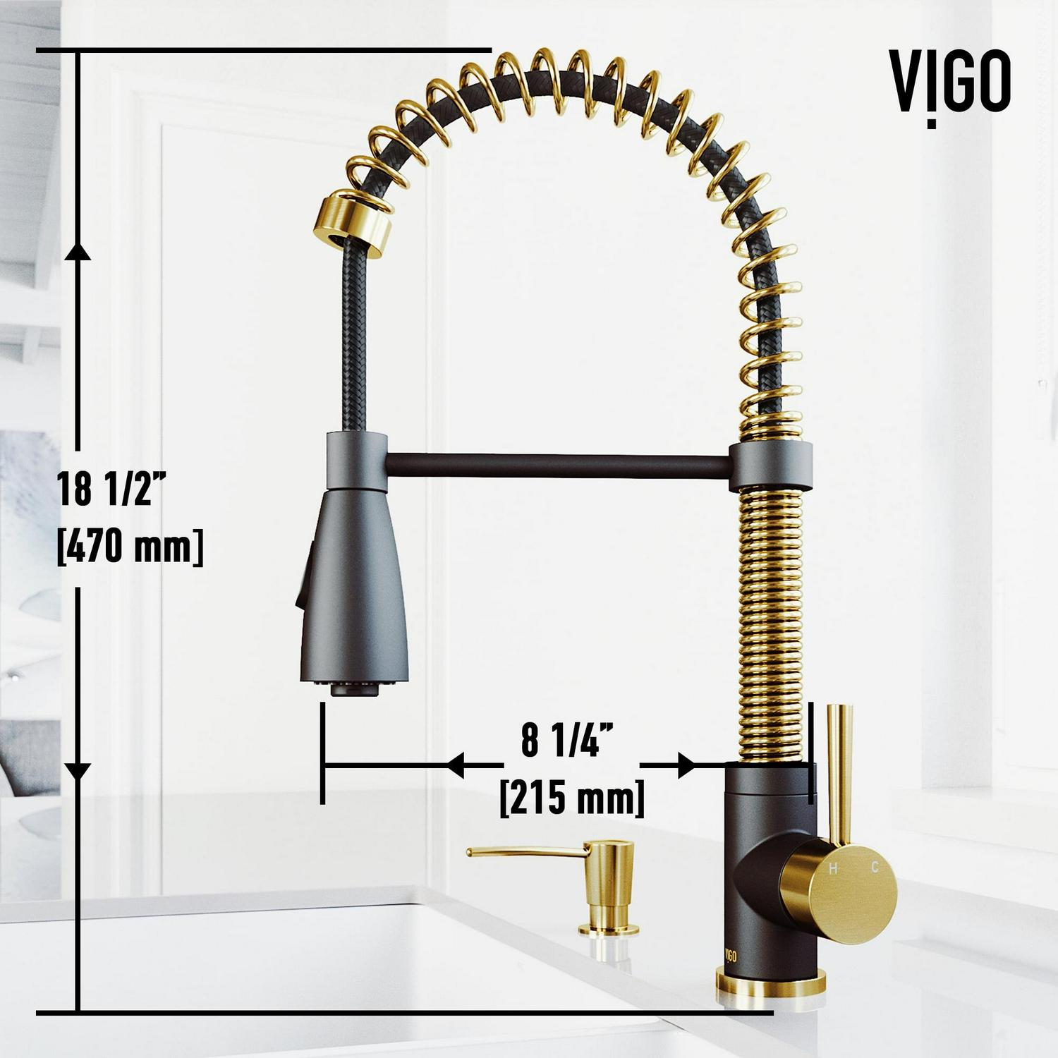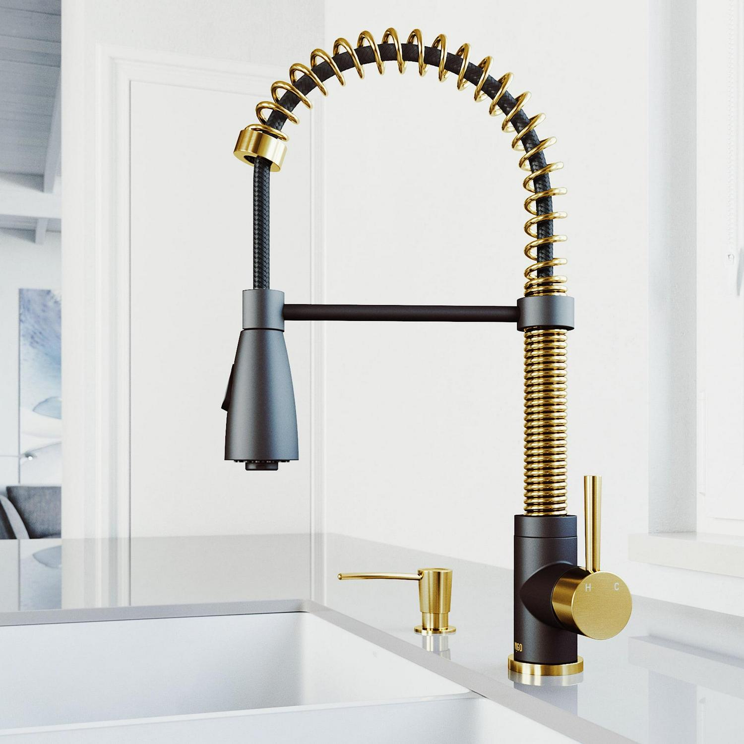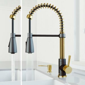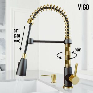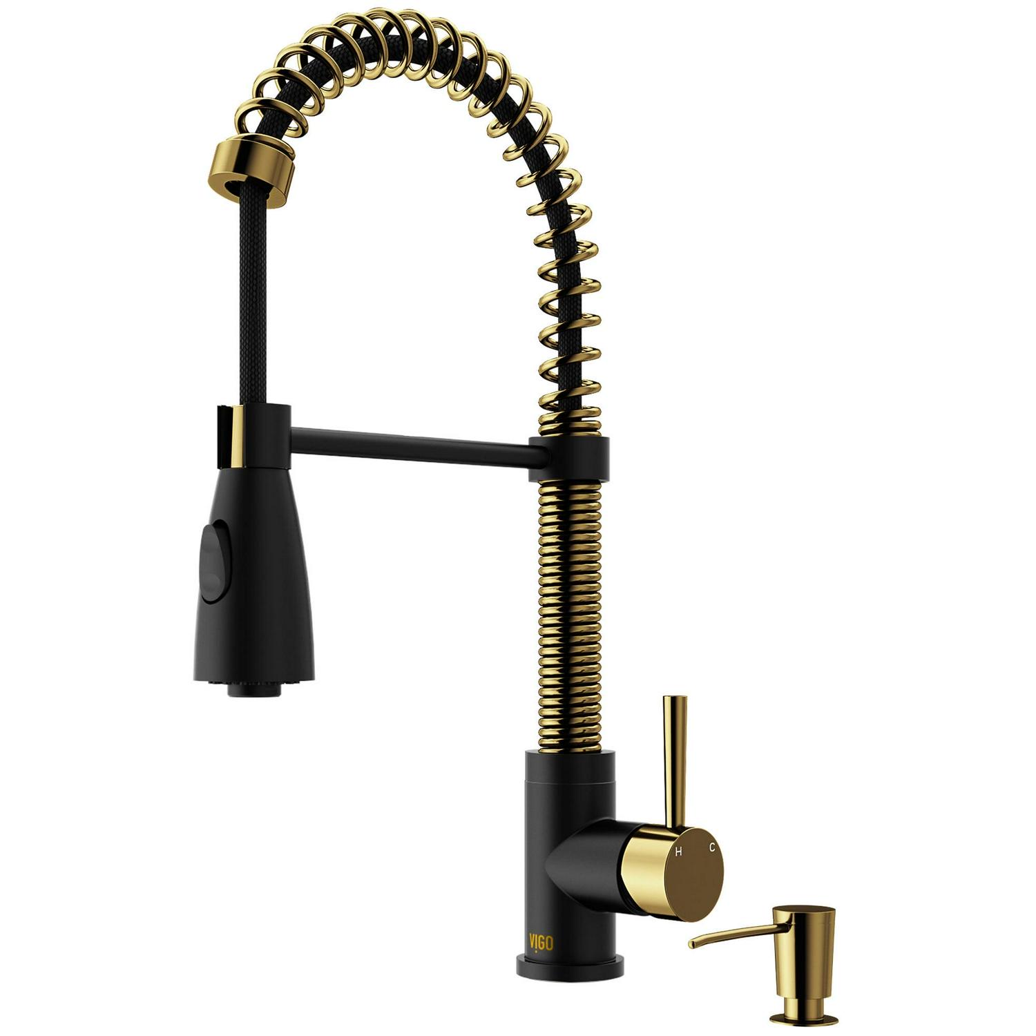 VIGO Brant Pull-Down Kitchen Faucet Matte Gold/Matte Black Faucet with Soap Dispenser Gold Finish