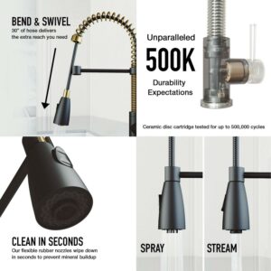 – EASY TO CLEAN: the nozzle resists mineral buildup, making this kitchen faucet easy to clean