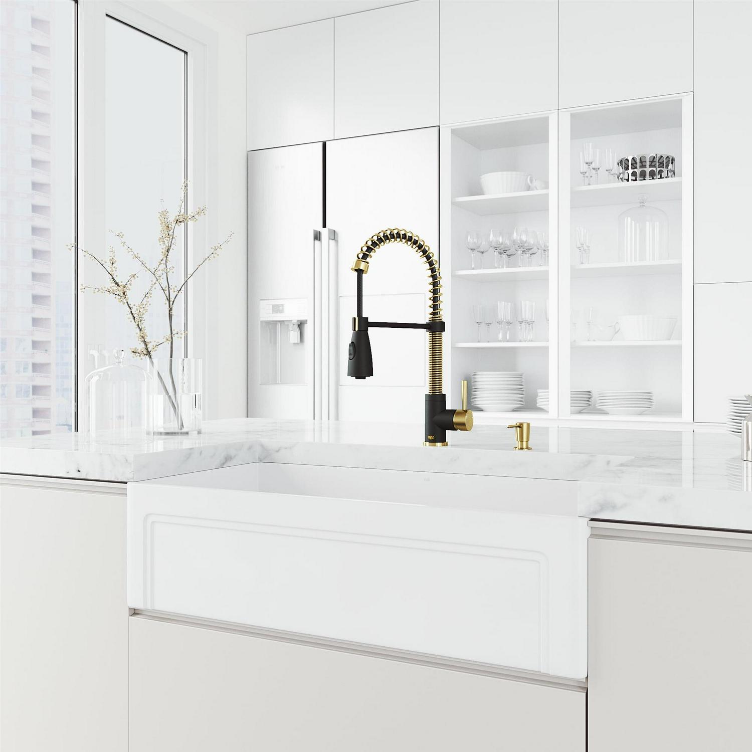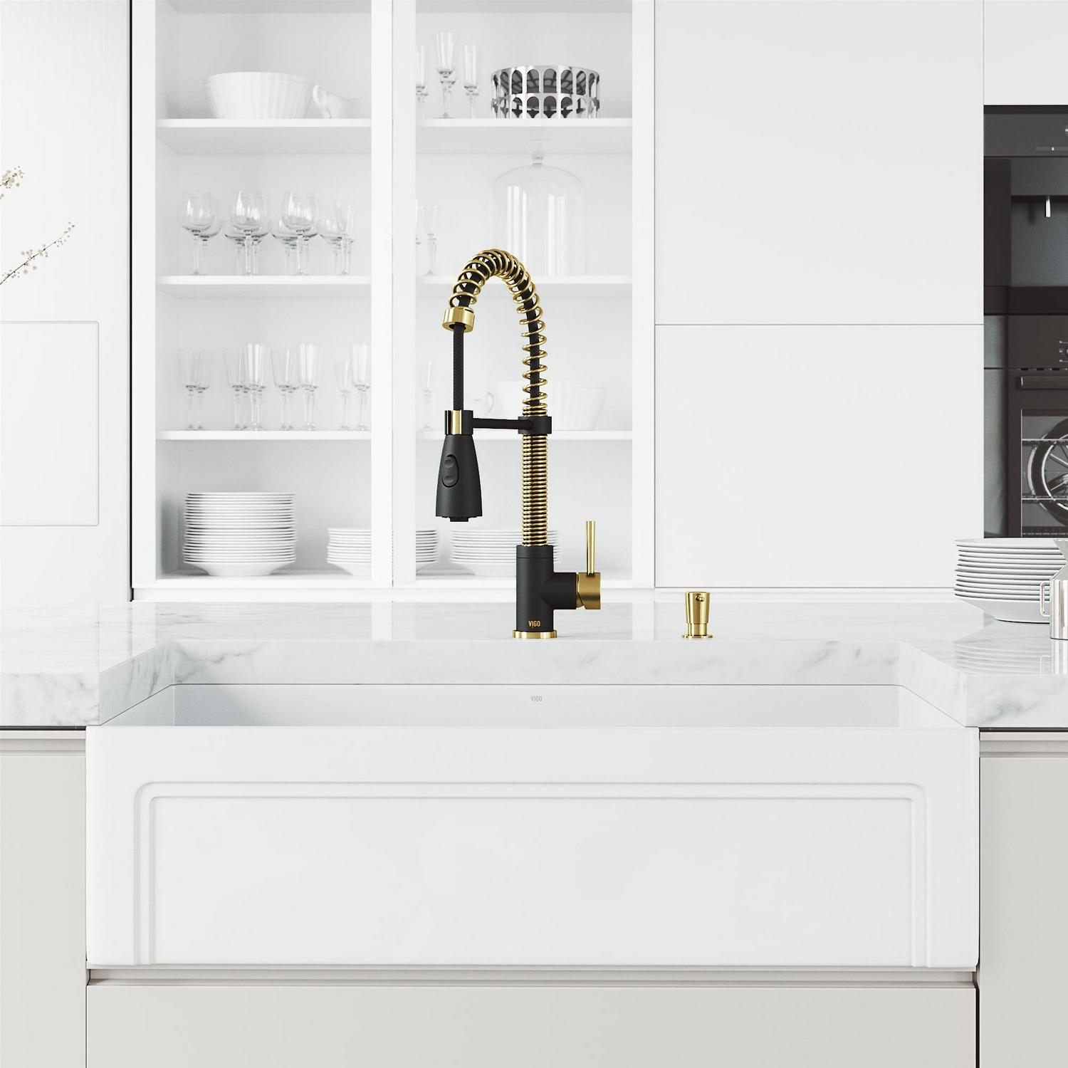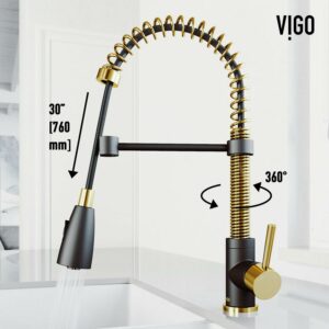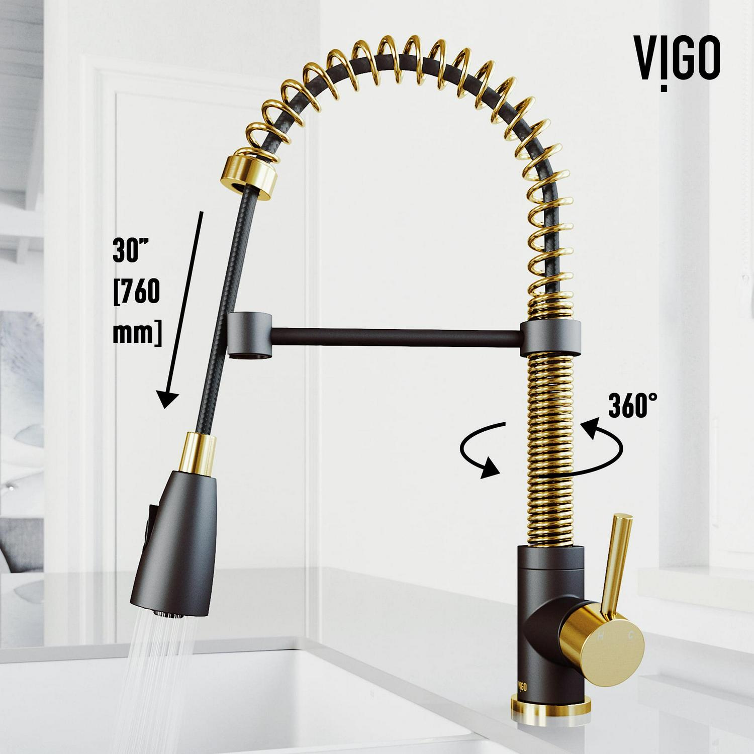 VIGO Brant Single Handle Pull-Down Sprayer Kitchen Faucet in Matte Brushed Gold and Matte Black