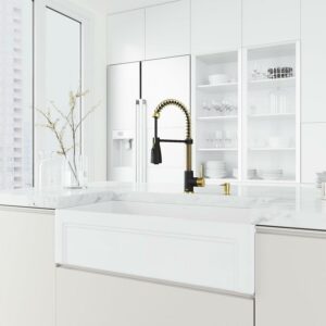 Engineering excellence meets creative hardware in the VIGO Brant Pull-Down Spray Kitchen Faucet. The dual-function, pull-down spray head allows for either a powerful spray or an aerated flow, making it exceptionally versatile for any use. The pull-down extendable hose reaches 30 in. long, keeping the faucet easy to use and maneuver. The spray head has 360° swivel capabilities for all-around ease of use. This faucet pairs well with any undermount or farmhouse kitchen sink. With top of the line hardware and backed by an exceptional warranty, the Brant is the epitome of simplicity done with style.