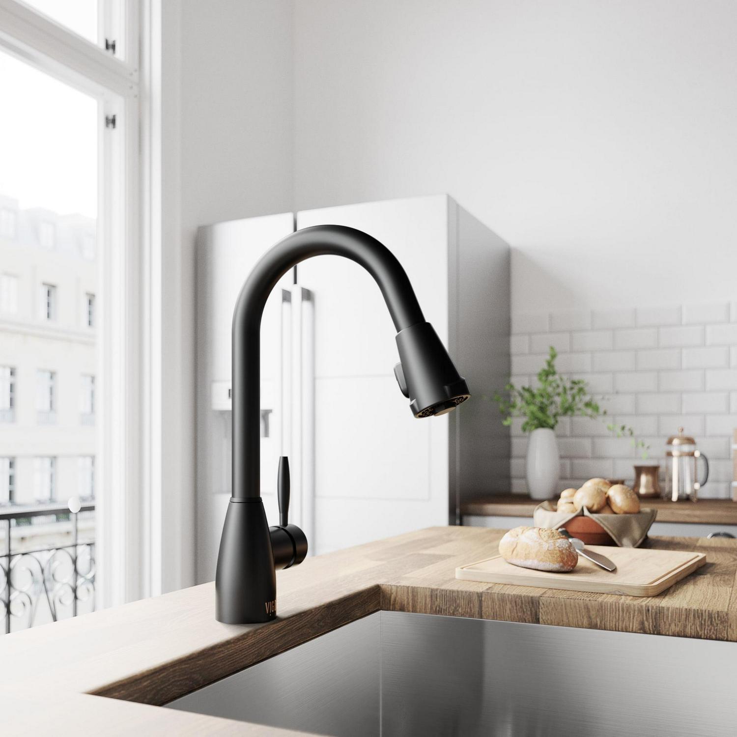 VIGO Graham Single Handle Pull-Down Sprayer Kitchen Faucet in Matte Black