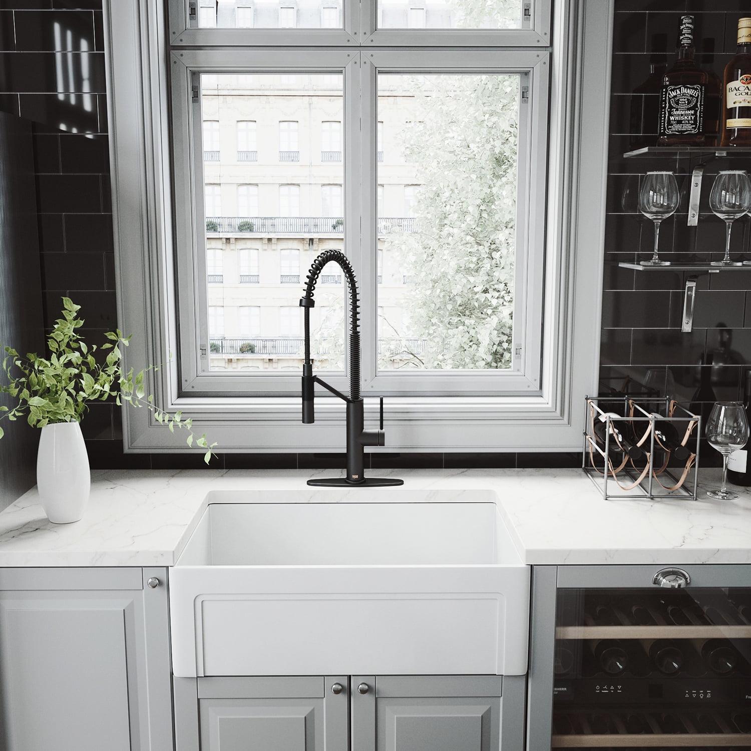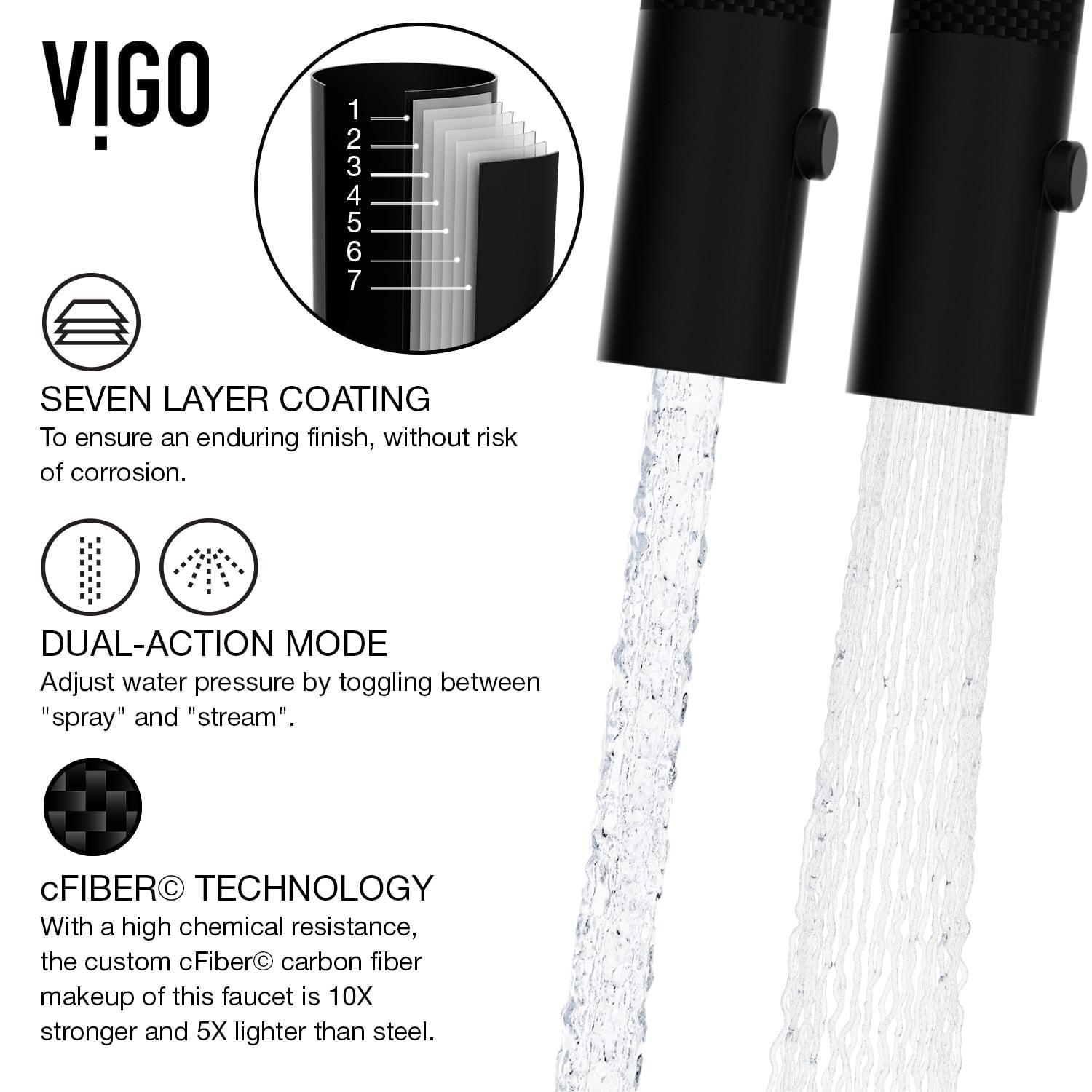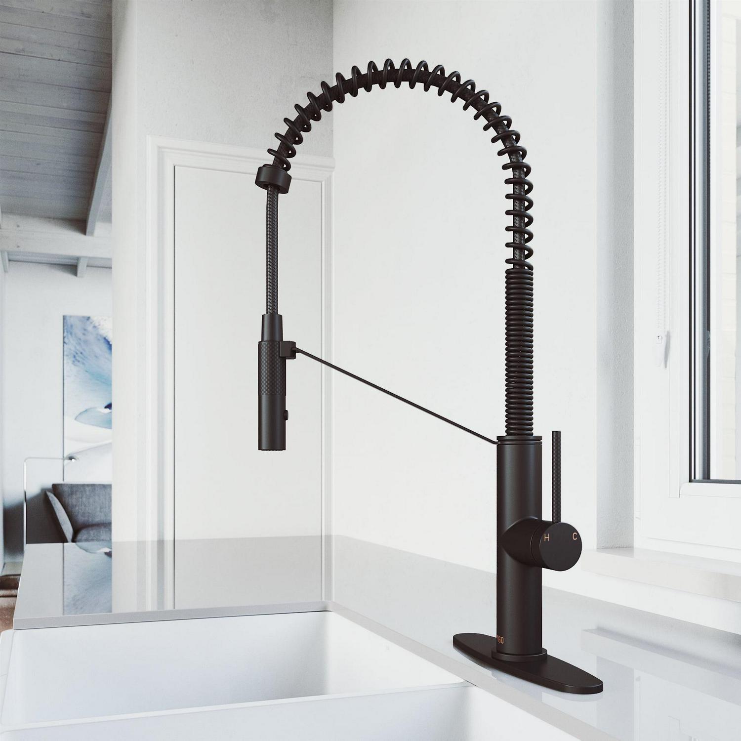 VIGO Livingston Single Handle Pull-Down Sprayer Kitchen Faucet Set with Deck Plate in Matte Black
