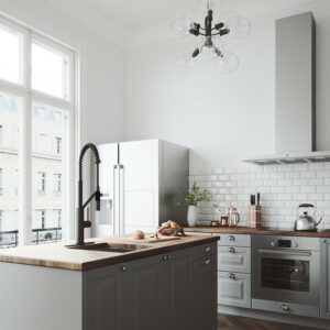 – DUAL-ACTION SPRAY HEAD: the multifunctional pull-down sprayer delivers an aerated flow of water or a powerful spray with the click of a button
