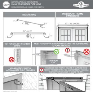 Hanging a garland above your wreath on your double-door front door gives your home the grand entrance you deserve during the holidays, but damaging your home with nails leaves a terrible view for the rest of the year. This patented garland hanger allows you to hang garland around your front door without damaging your home with nails or screws. The hanger’s width is adjustable to fit door frames between 52 in. – 82 in. wide. Designed to prevent damage to your door frame, the garland hanger uses pressure to hold garlands up to 20 lbs. up in your door jam. Complete with rubber pads on each end help ensure that your door frame is protected, and a durable powder coating to prevent rusting of the hanger.