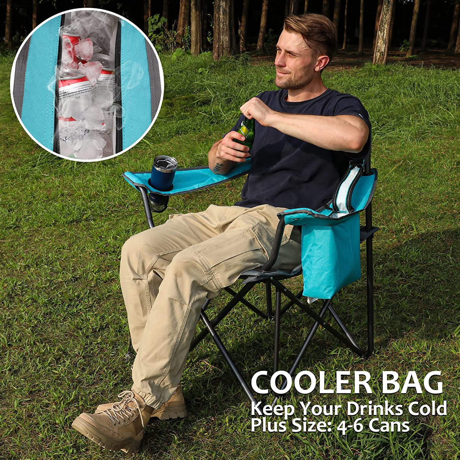VILLEY Oversized Camping Chair, Heavy Duty Support 450 lbs, Folding Camp Chair, Portable Outdoor Chairs with Padded Seats, Cooler Bag, Cup Holder, Carry Bag for Camping, Lawn, Beach, Hiking, Blue