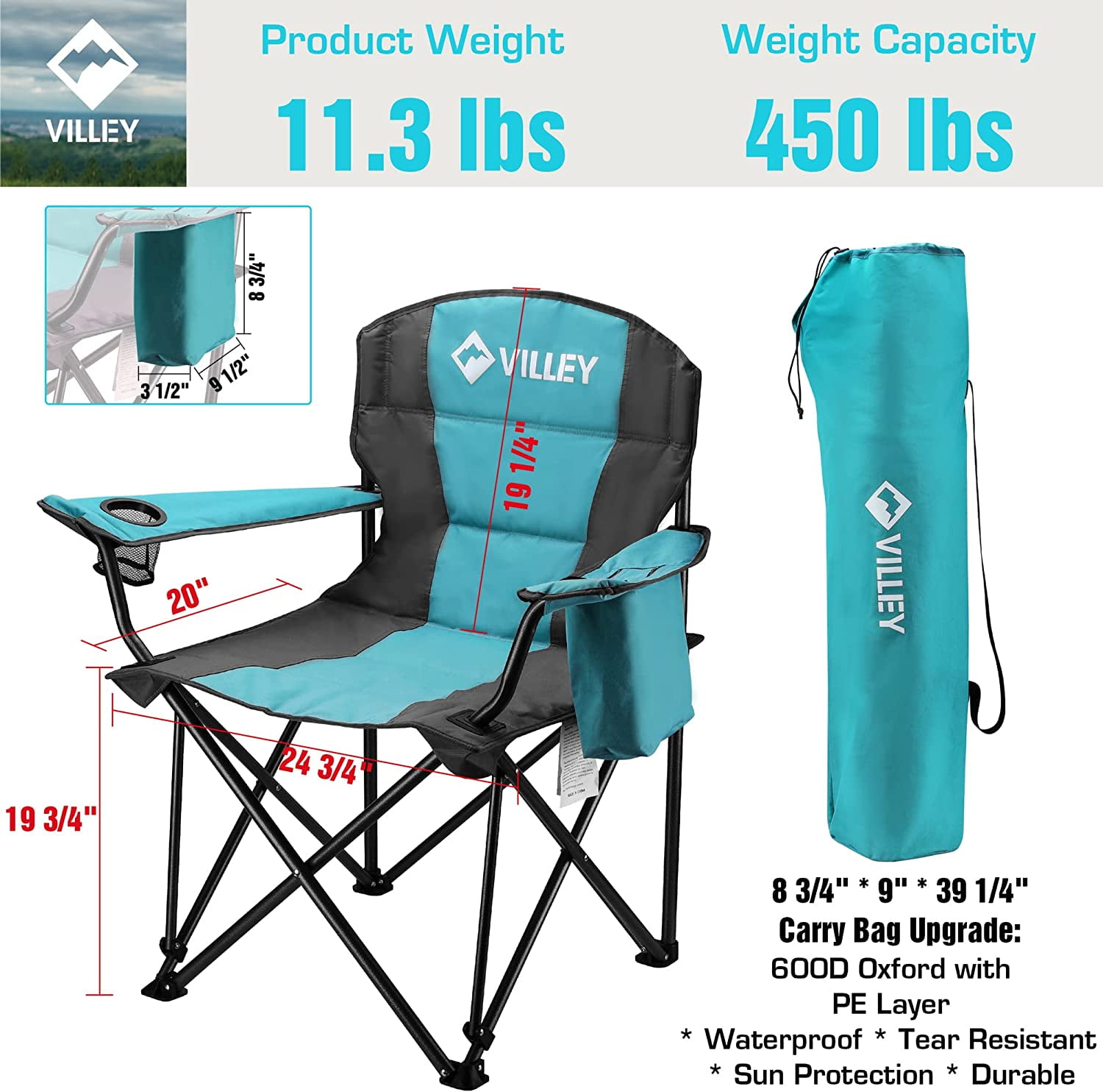 Home / Sports & Outdoors / VILLEY Oversized Camping Chair, Heavy Duty Support 450 lbs, Folding Camp Chair, Portable Outdoor Chairs with Padded Seats, Cooler Bag, Cup Holder, Carry Bag for Camping, Lawn, Beach, Hiking, Blue