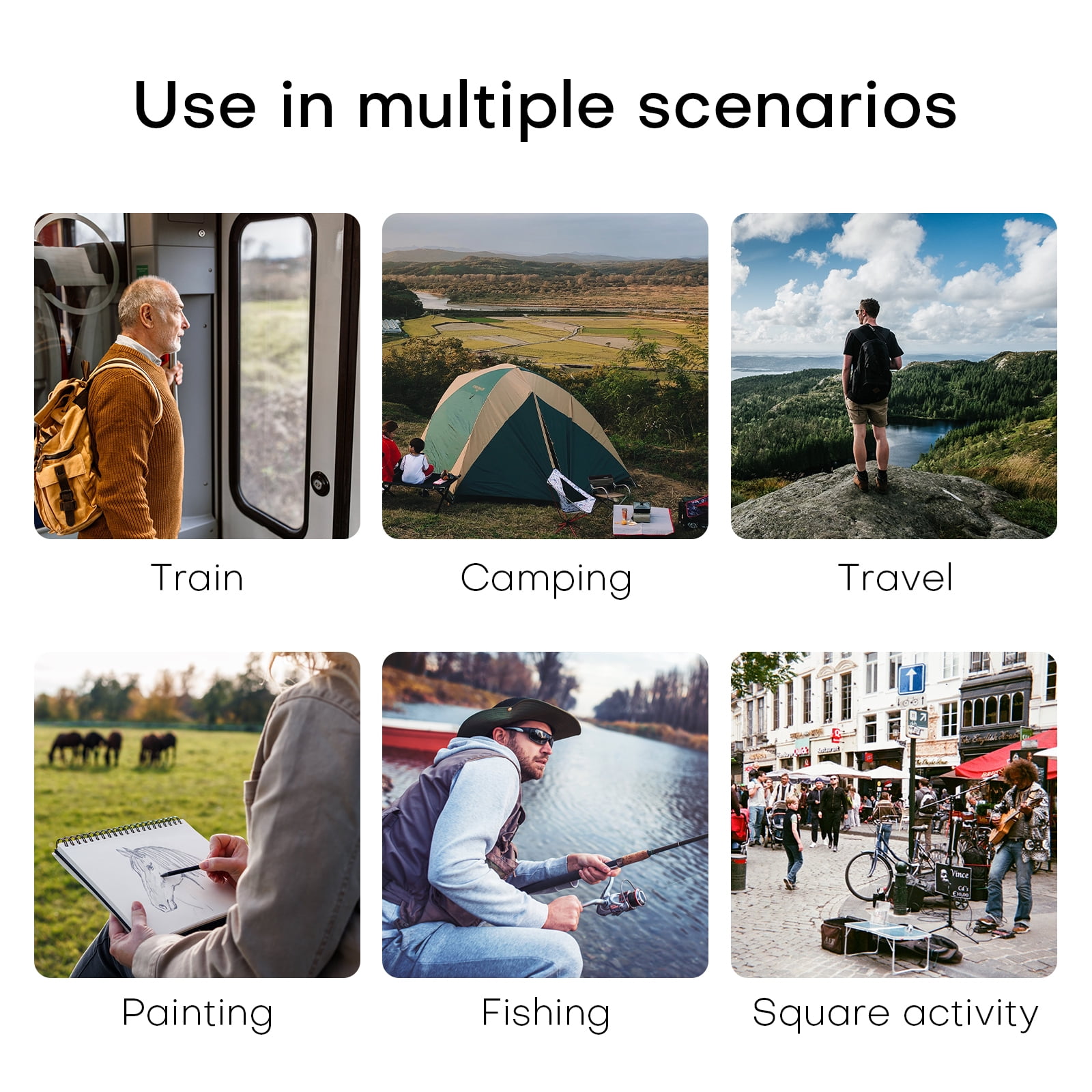 The folding camping stool We have taken the 600D double-layer Oxford cloth and a high-quality steel tube, increasing the weight capacity to 200 pounds! It is lightweight and does not rust easily, as the aluminum frame differs from stainless steel materials. Mini portable folding stool is very light, only 1.3LBS; you can open or fold it into a compact size in seconds to save a lot of space. When you travel, fold up the mini portable chair and put the camping chair compacty in your travel backpack or car. The 4 legged design provides better support. You will not feel tired even if you sit on the compact folding stool for a long time. Portable hiking chair easy quad-fold for a quick and straightforward setup. The mini camping chair folds down compactly and fits into included carry bag for easy transportation. The VINAUO portable outdoor camping chair provides a premium seating experience with no sag seating. This adult camping chair locks in the folded position for easy portability without the carry bag This folding chair is perfect for all outdoor events, including tailgating, camping, watching your favorite sports team, or fishing! This lawn chair also features organizer pockets. Use the included carry bag to carry your portable camping chair. Folding Portable Picnic Camping Stool Folding Chairs Foldable Ultra Light Subway Train Fishing Chair Lawn Chair