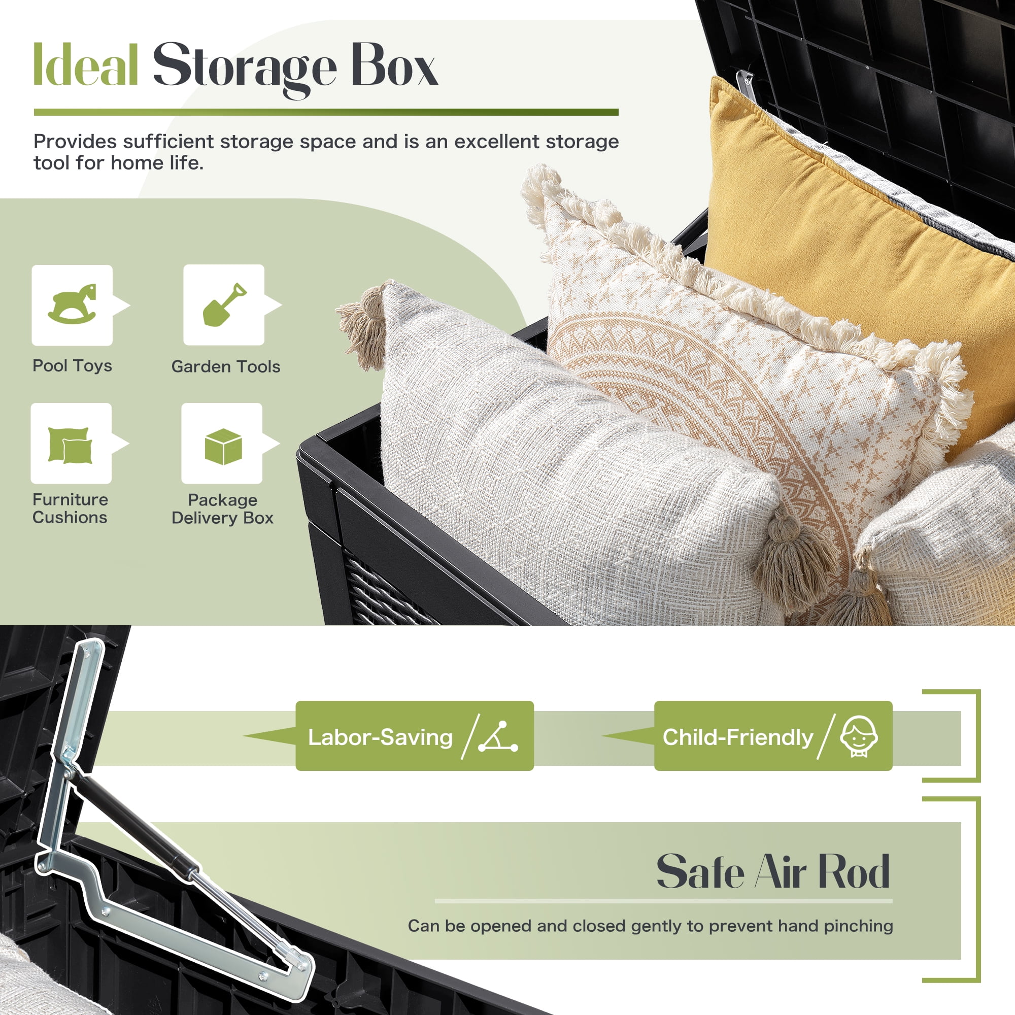 Vineego 100 Gallon All-Weather Resin Deck Box,Indoor Outdoor Lockable Storage Container, Black