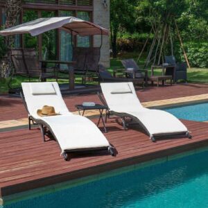 Vineego 3-Pieces Patio Adjustable Chaise Lounge Chair Sets, Multicolor