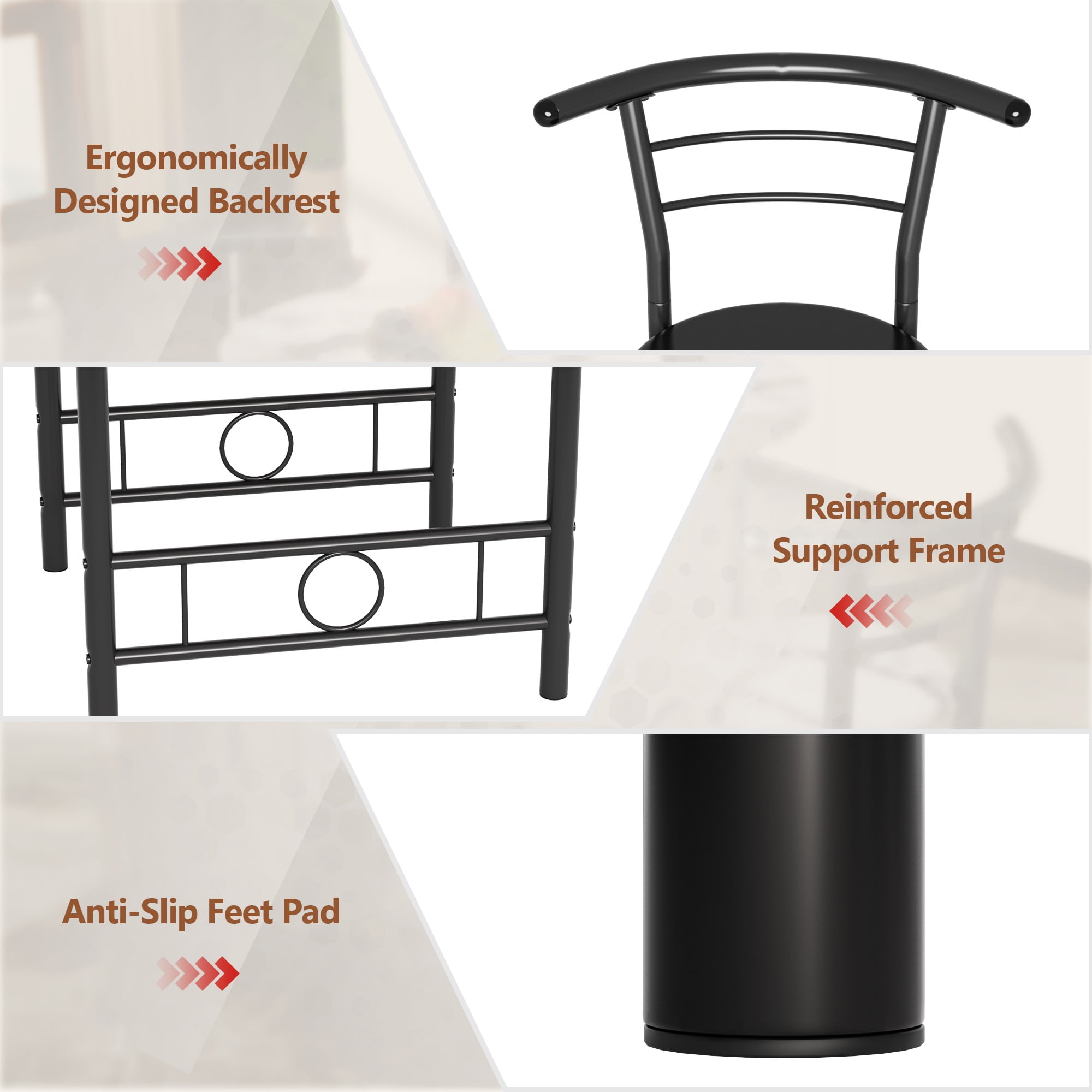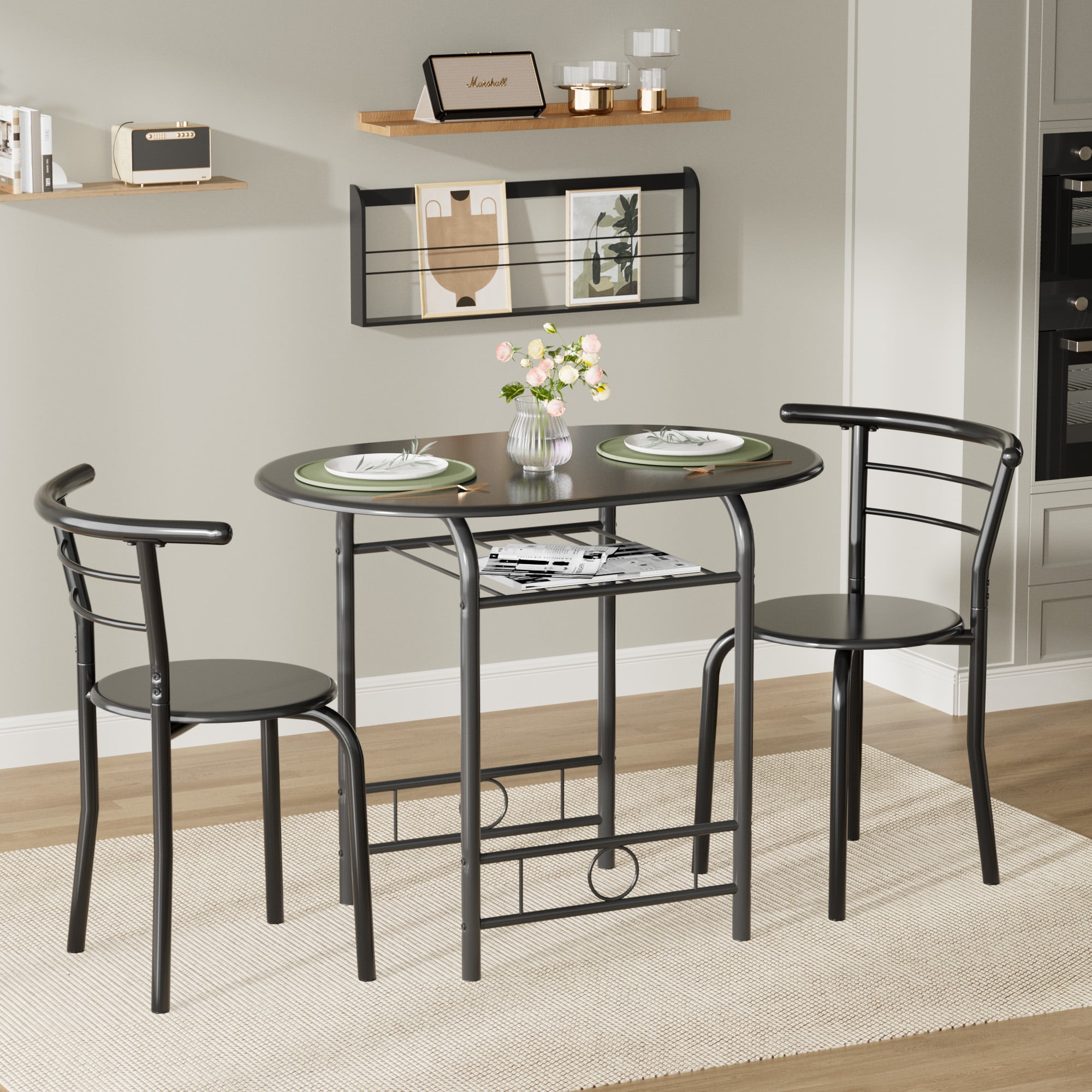 Vineego 3 Pieces Dining Set for 2 Small Kitchen Breakfast Table Set Space Saving Wooden Chairs and Table Set,Black