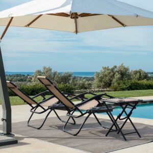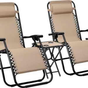 Vineego 3 Pieces Zero Gravity Chair Patio Foldable Chaise Lounge Chairs 2 Beach Chairs and Table with Cup Holders,Beige