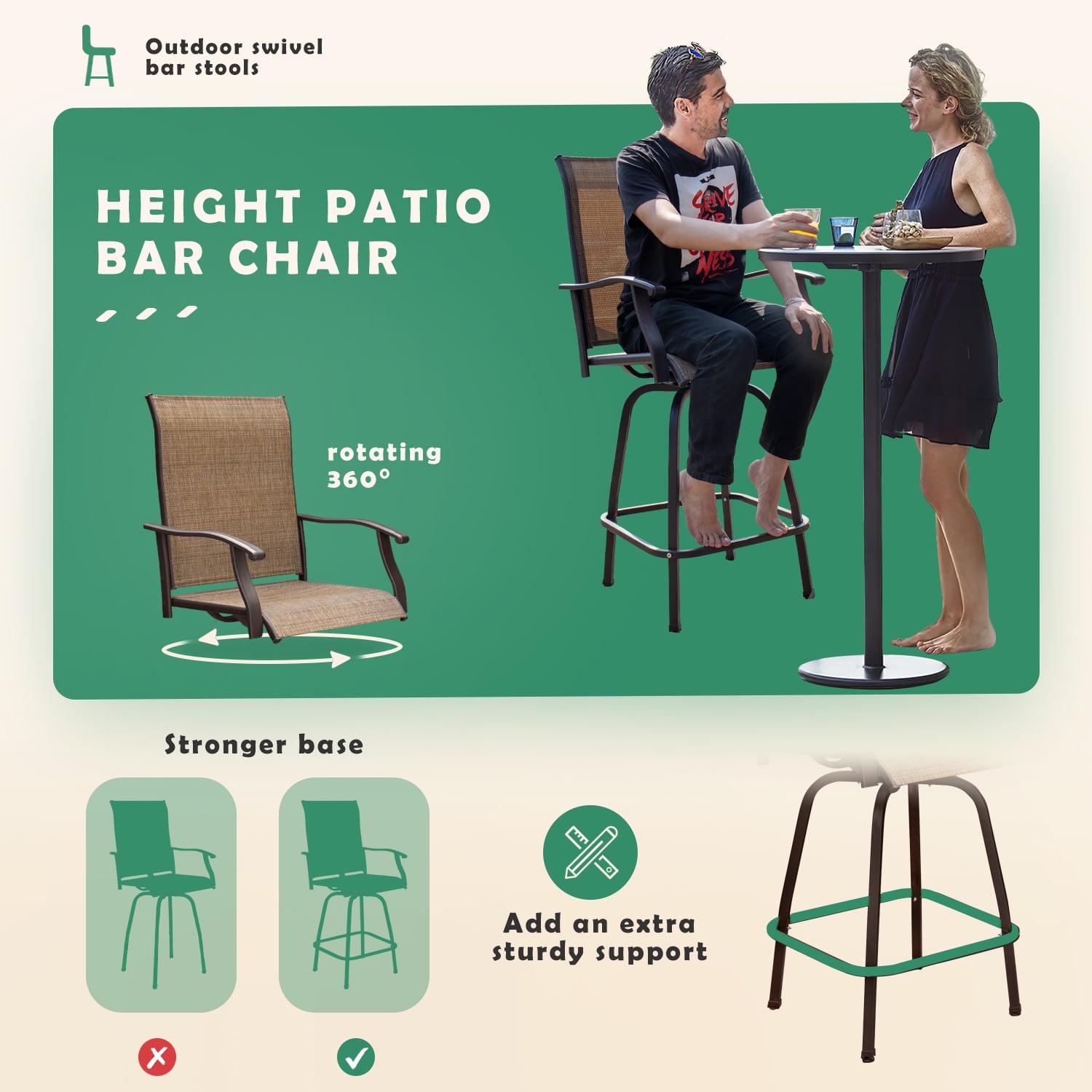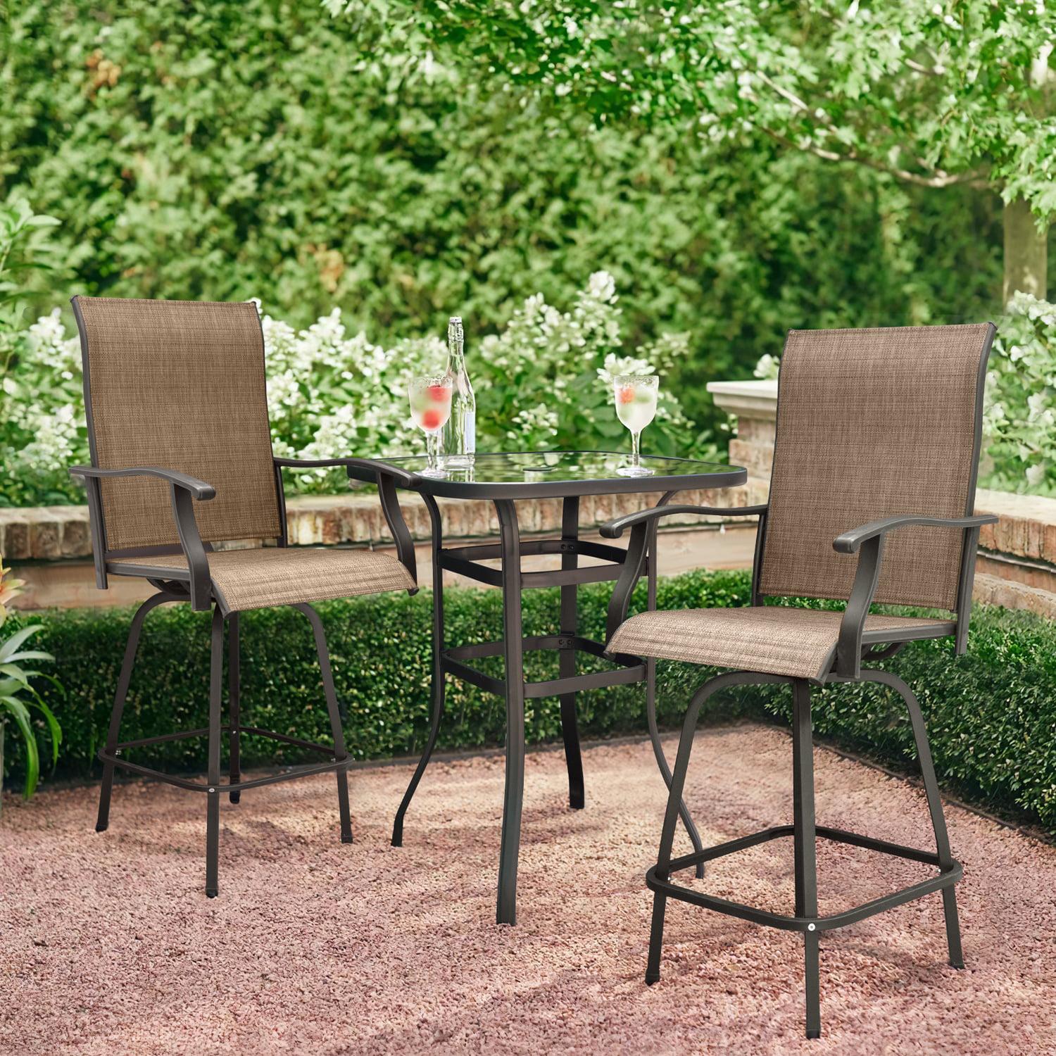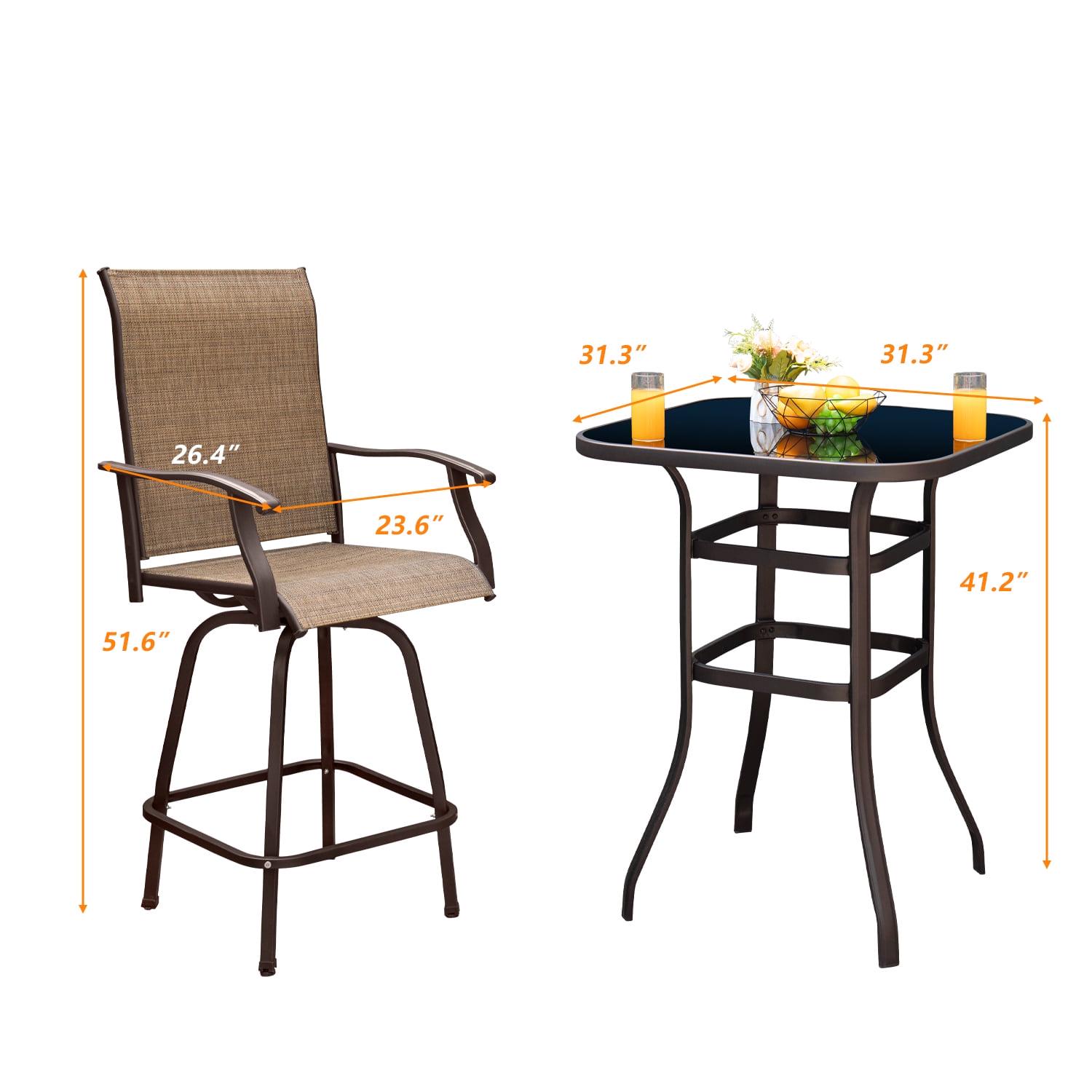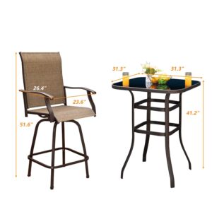 Vineego 3PCS Textilene Swivel Bar Sets, High Bistro Sets,2 Bar Stools and Bar Table