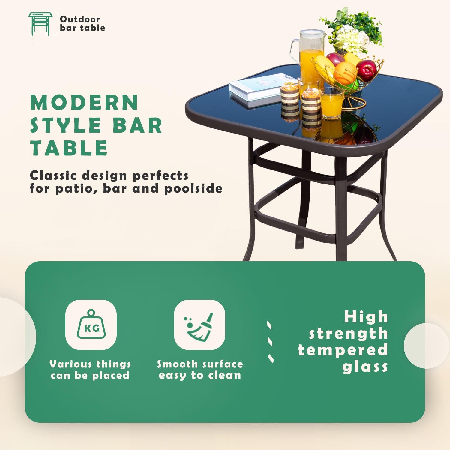 Our 3 piece patio bistro set is perfect for both outdoor or indoor usage. Simple but unique design makes them versatile for most decoration style or outdoor places. Seat and back of chairs are highly fade-resistant even under sunlight exposure, also provides high intensity for long-term use. Swivel chairs are fun to sit on with a turntable based swivel mechanism, allowing 360° swivel and ensure safe sitting. Tempered glass tabletop is extremely hard and does not break easily with a smooth and scratches resistant surface.