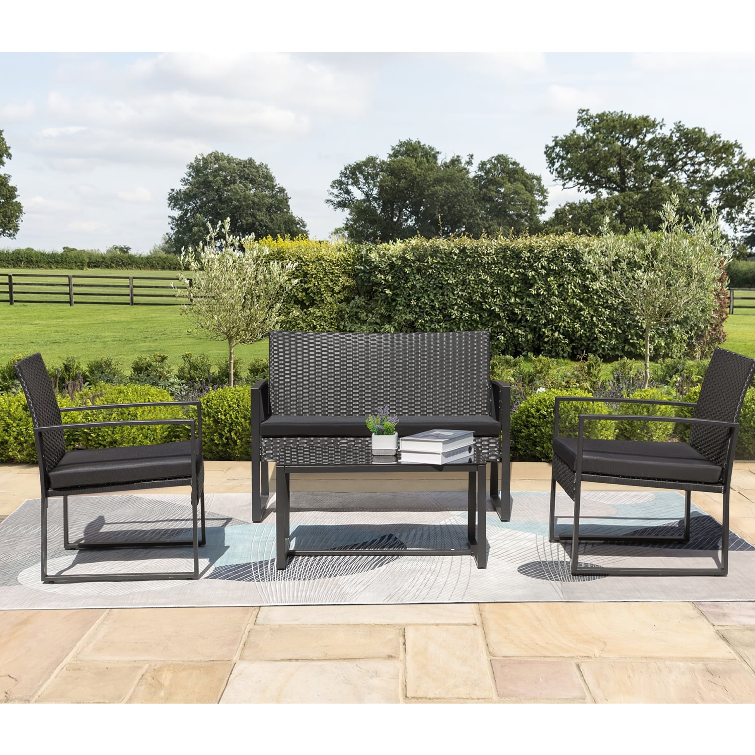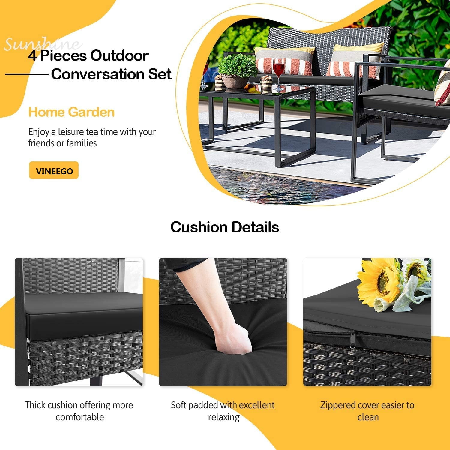 Vineego 4 Pieces Patio Conversation Sets PE Rattan Chairs with Loveseat and Table,Black