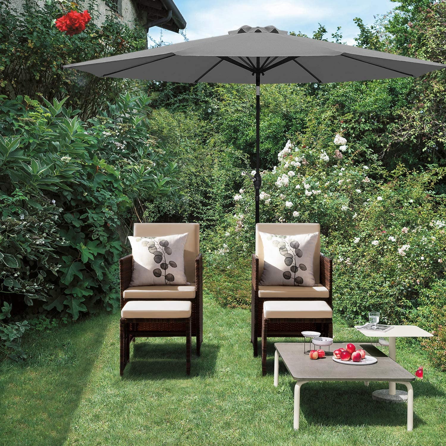 Vineego 5 Pieces Wicker Outdoor Patio Furniture Set Sit back and relax in complete comfort with this rattan furniture set from Vineego! Formed of five pieces, the set features two armchairs, two footstools, and a matching umbrella. Made from handwoven PE rattan, each piece of our wicker patio furniture is weather resistant and low maintenance, with a steel frame underneath for extra support and stability. The two plush cushions on each chair ensure you‘ll be relaxing comfortably for hours on end, and the outdoor sofa set has removable covers making them easy to clean. Our rattan furniture set is the perfect combination of style, comfort, and creates minimal hassle every single day!