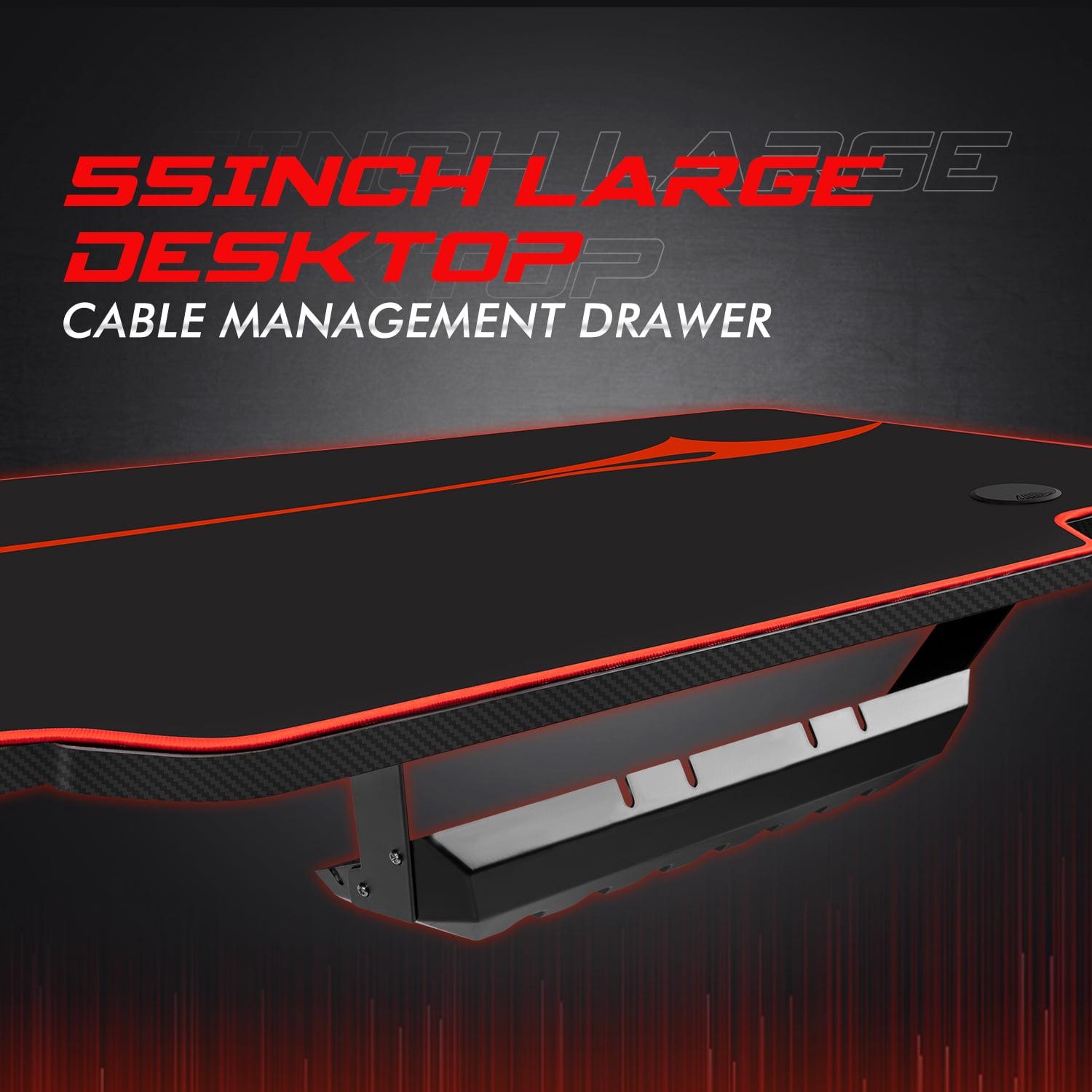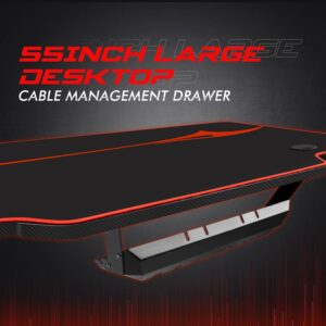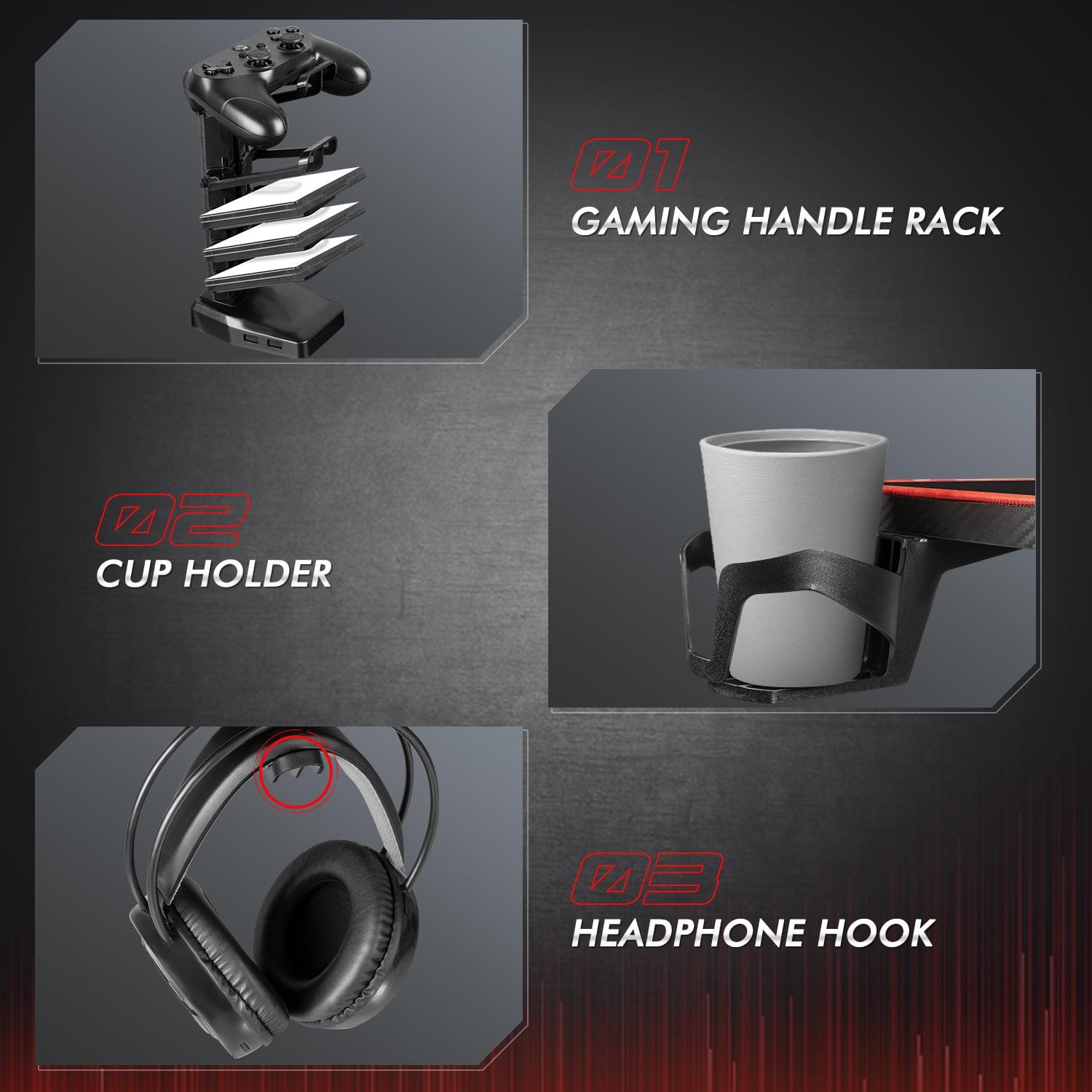 – Friendly design: This gaming table is equipped with a whole mouse pad, gaming handle rack, cup holder and headphone hook. This configuration make sure everything is within reach. A cable management drawer under the desk allows your desk more organized and orderly.