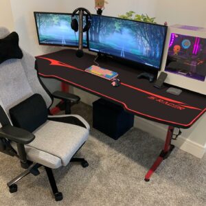 – Sturdy and steady construction: T-shape legs and metal frame provide the desk a more strong support. Besides 4 stable adjustable feet enhance the gaming desk stable level.