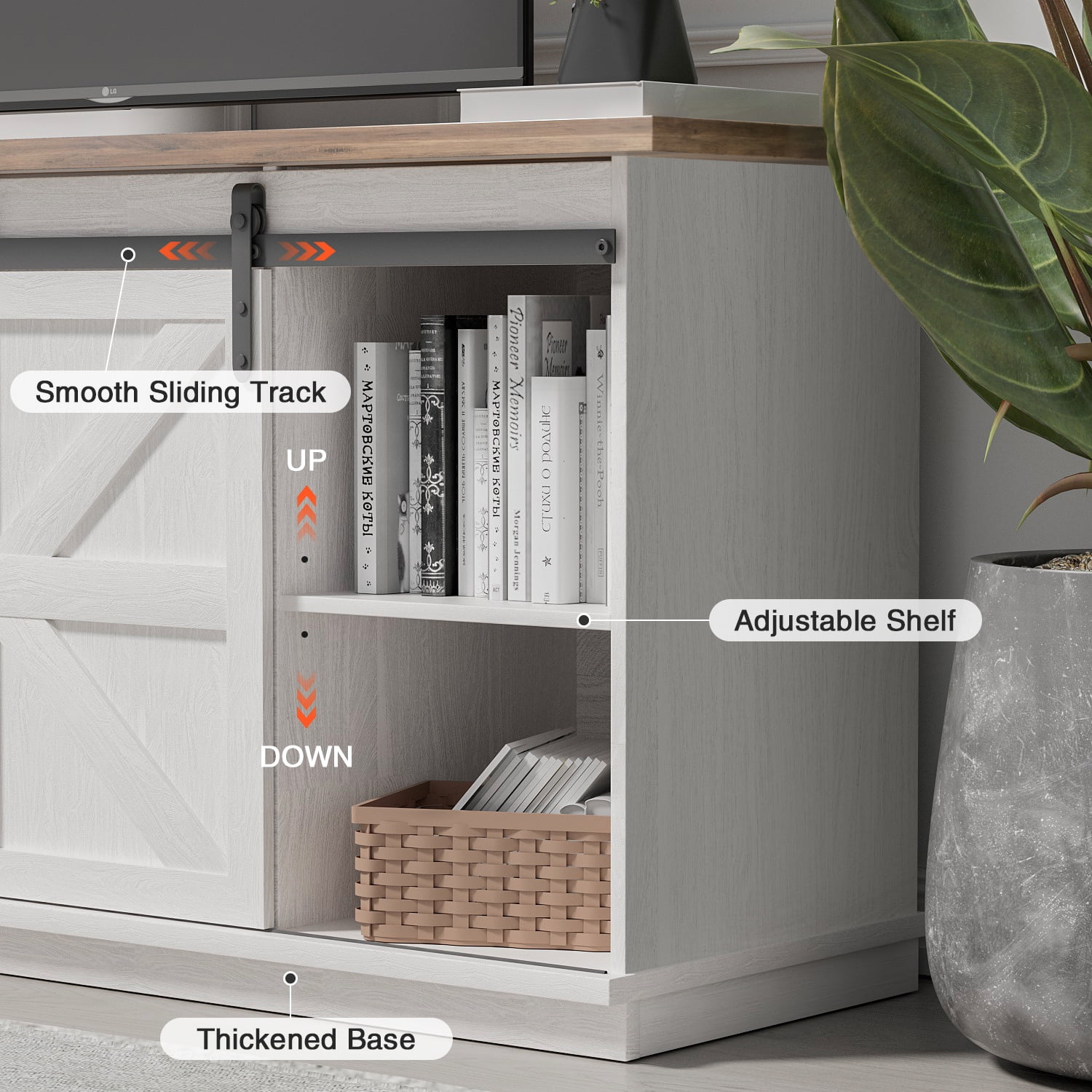 Vineego 58 Inch Farmhouse TV Stand and Entertainment Center for Televisions,with Sliding Barn Doors and Storage Cabinets,Milk White