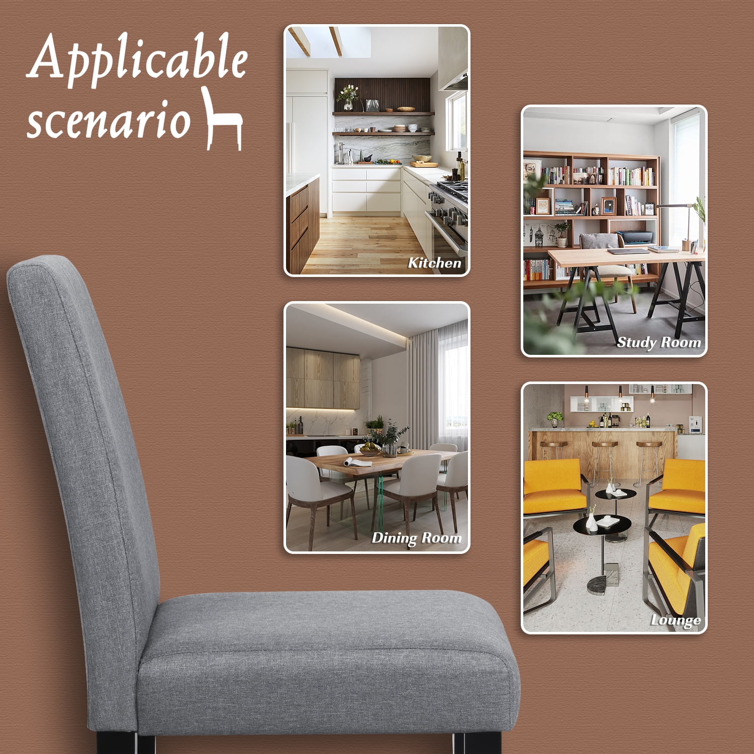 Vineego Dining Chairs Urban Style Fabric Parson Chairs Kitchen Living Room Armless Side Chair with Solid Wood Legs Set of 4 (Gray)