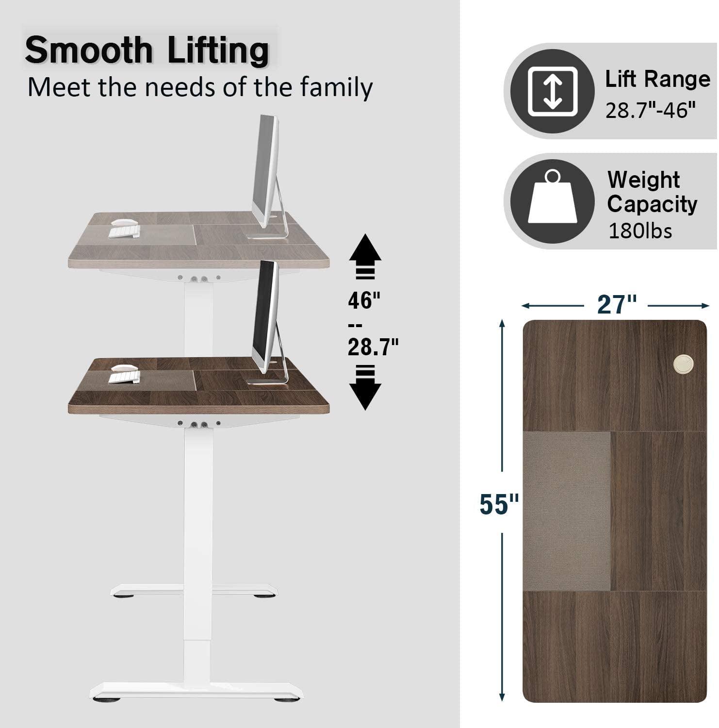 Vineego Electric Standing Desk Height Adjustable Office Desk with 55a x 27.5a Tabletop Home Office Workstation, Walnut Finish
