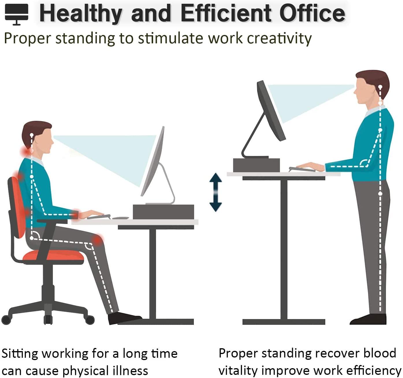 Long-term sitting will have a bad effect on our body. Standing and sitting alternately work is currently the most scientific and healthy office method. The height adjustable computer desk not only allows you to have the most comfortable height when sitting, prevents your spine from bending, but also allows you to sit and stand alternately to work, relieve leg numbness and body fatigue caused by long sitting, makes your energy more concentrated. Also the 55 inch super spacious desktop can easily put two computer monitors, keyboard and mouse, notebook, work documents, decoration items and so on, to create an excellent and comfortable working environment for you.