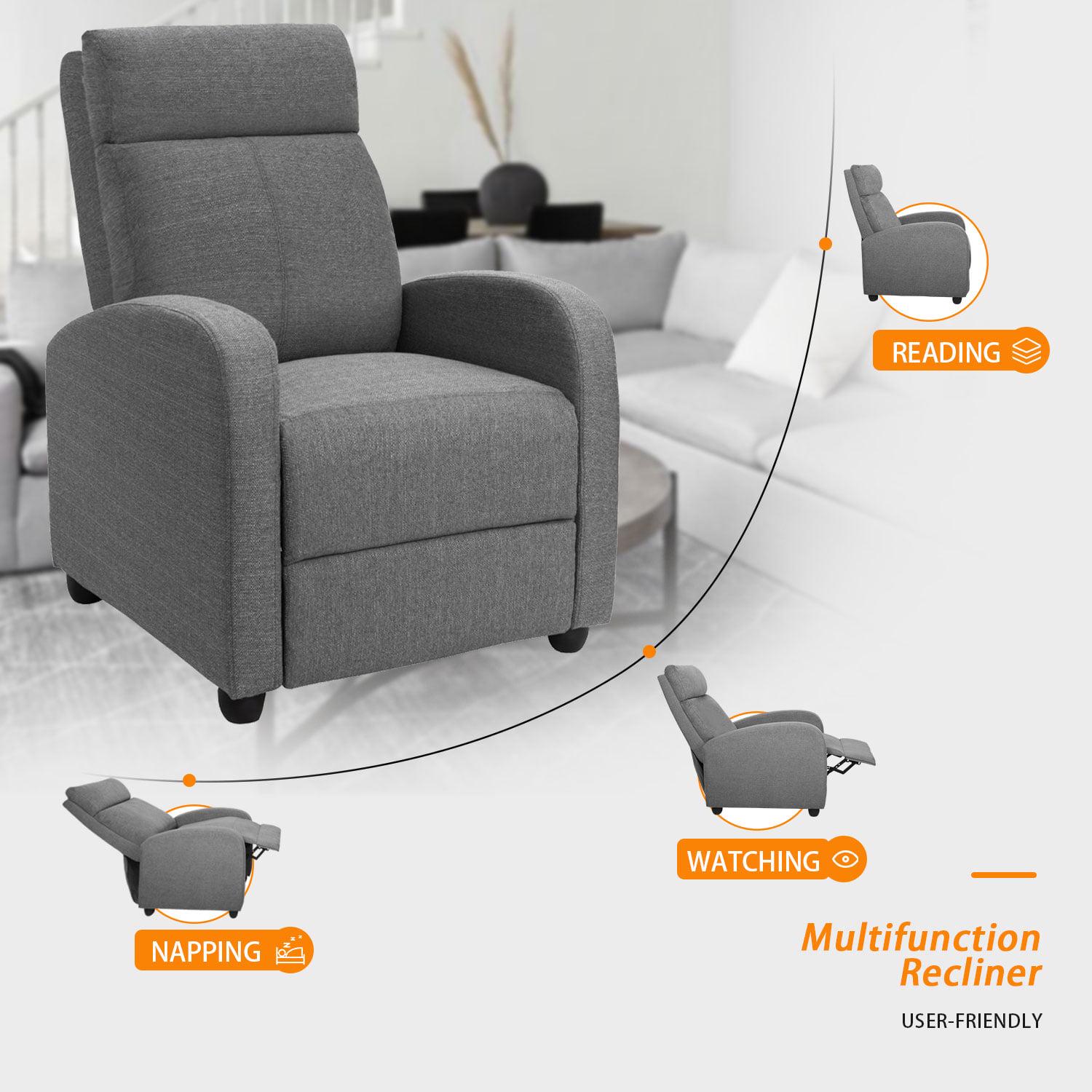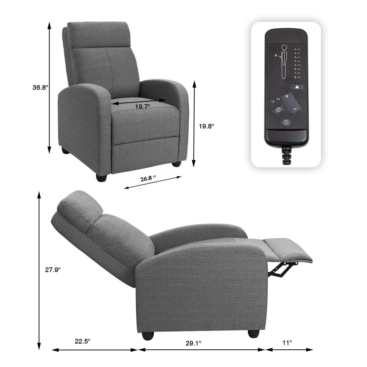 Vineego Fabric Single Massage Recliner Chair with Thick Seat Cushion and Backrest, Gray Fabric, Gray