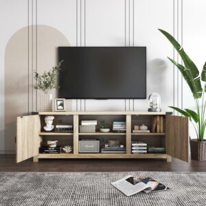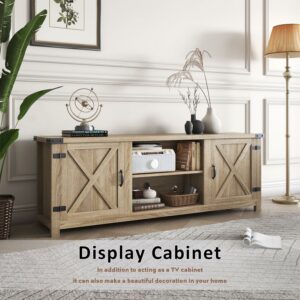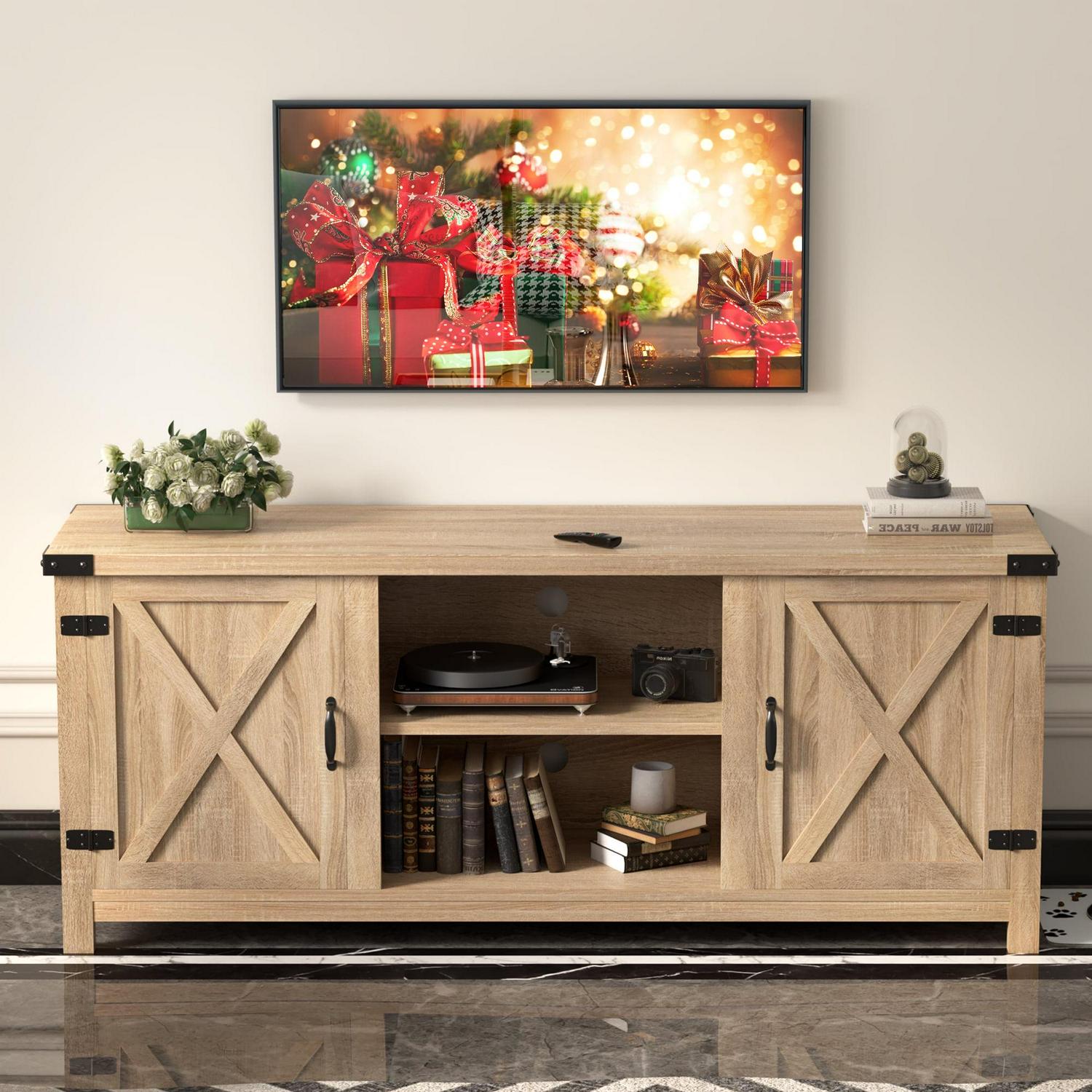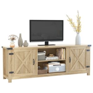 Vineego Farmhouse Tv Stand 58a Rustic Barn Two-Door Tv Stand for TVs up to 65 ,Oak