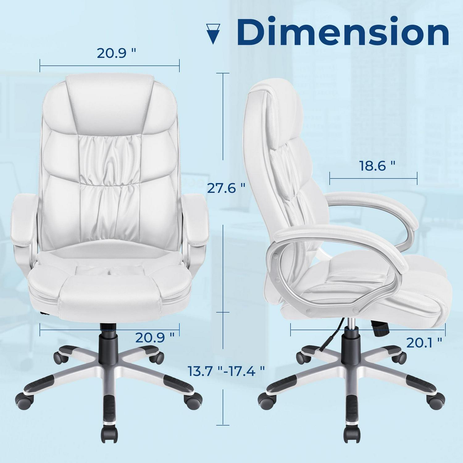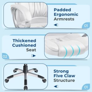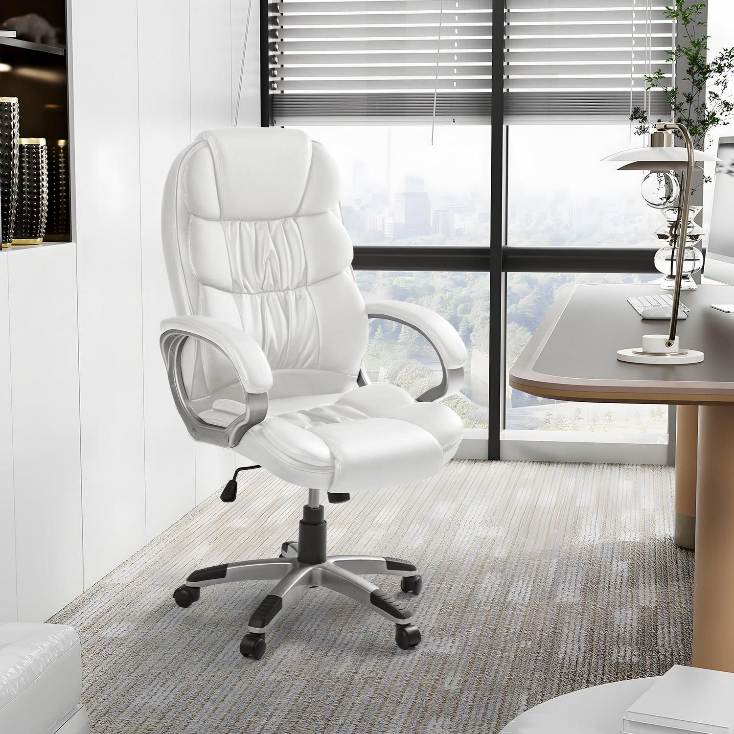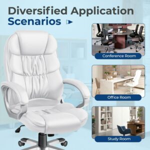 Vineego High Back Executive Chair PU Leather Business Managera s Office Chair Adjustable Ergonomic Swivel Desk Chair with Lumbar Support and Armrest, White