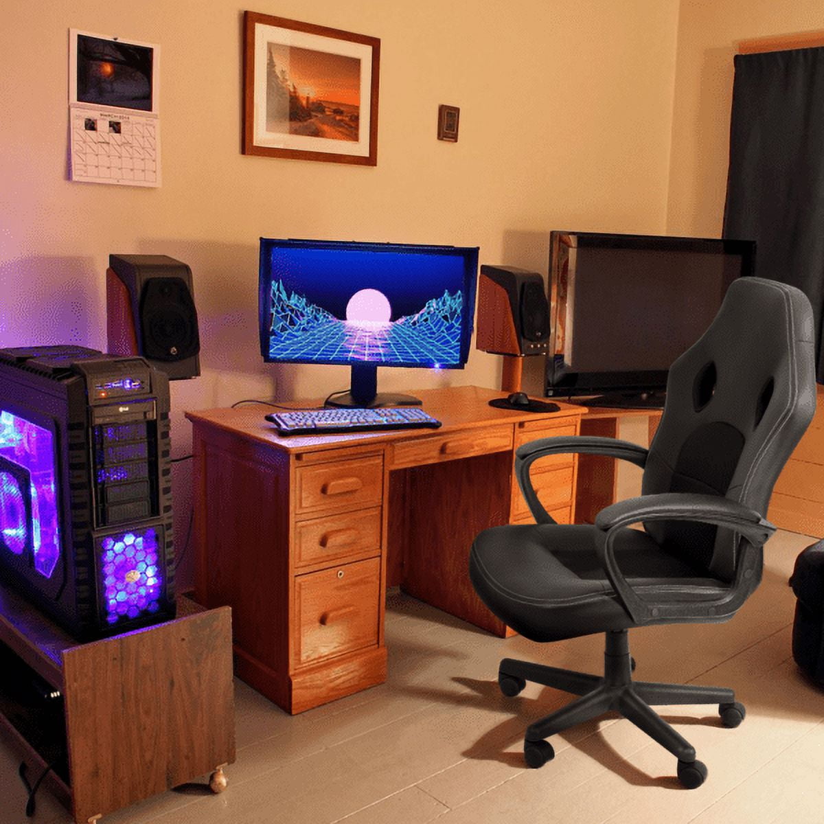 Vineego High Back Office Chair Faux Leather Gaming Racing Chair Ergonomic Adjustable Swivel Executive Chair, Black
