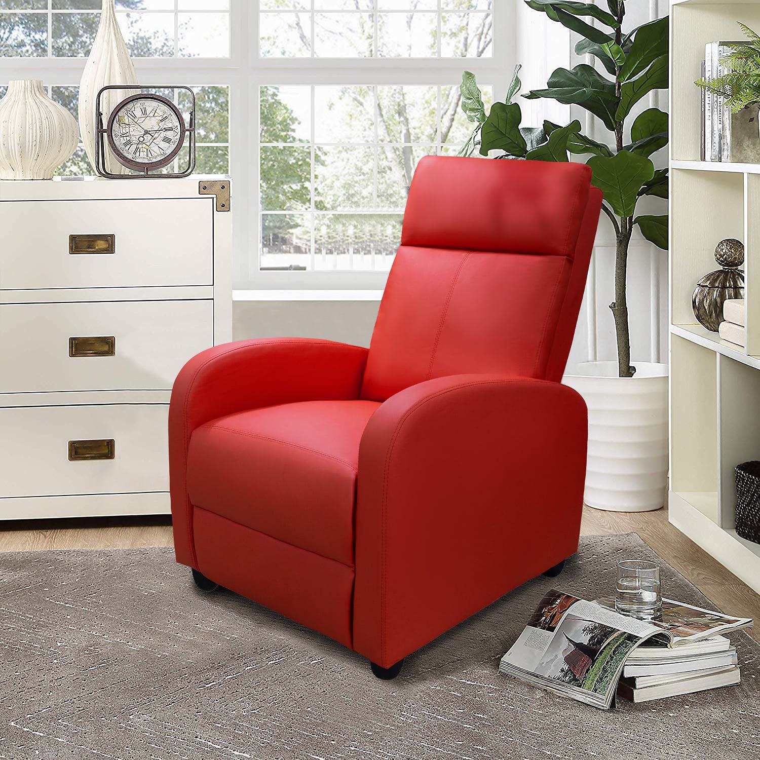 Vineego Home Theater Recliner with Padded Seat and Backrest, Red Faux Leather
