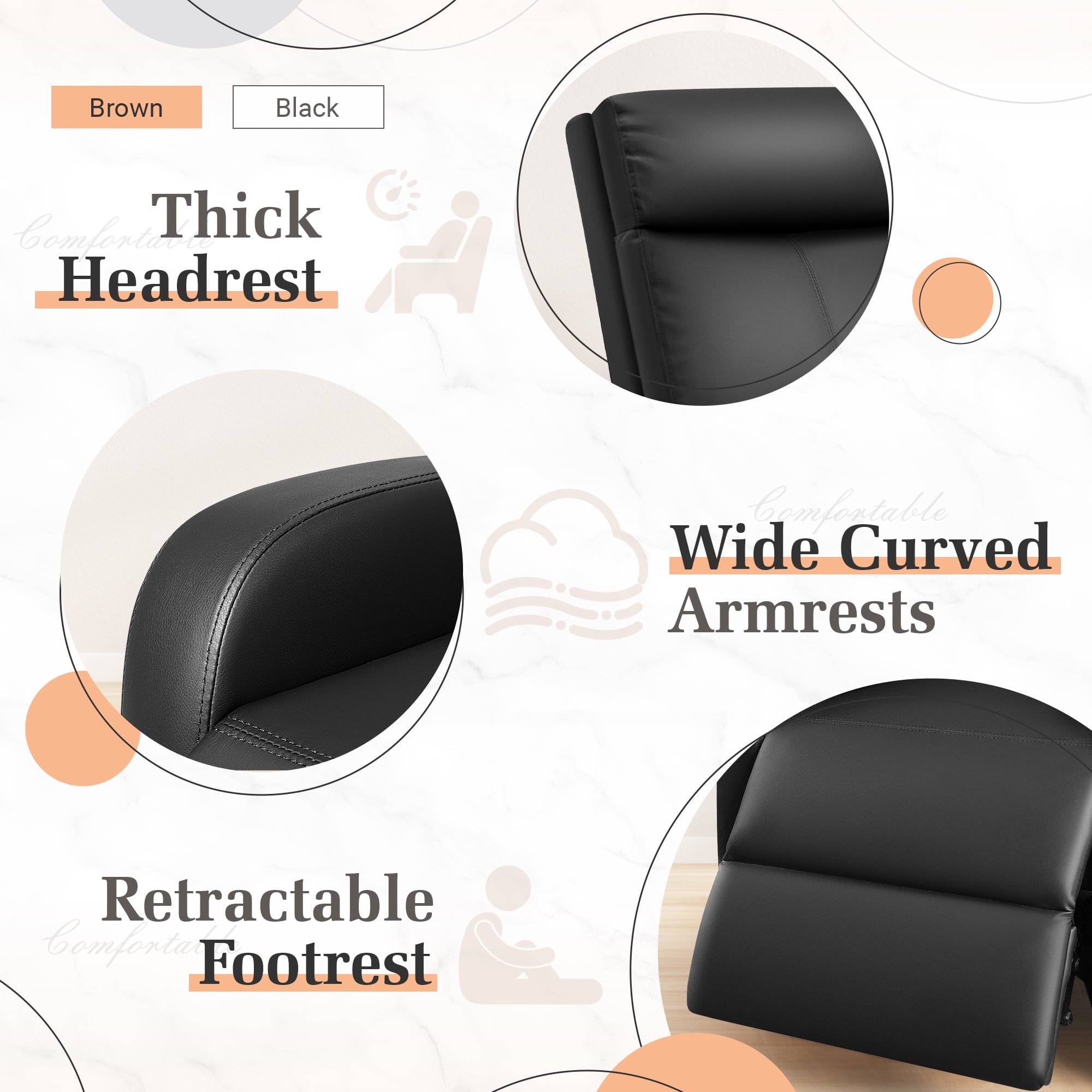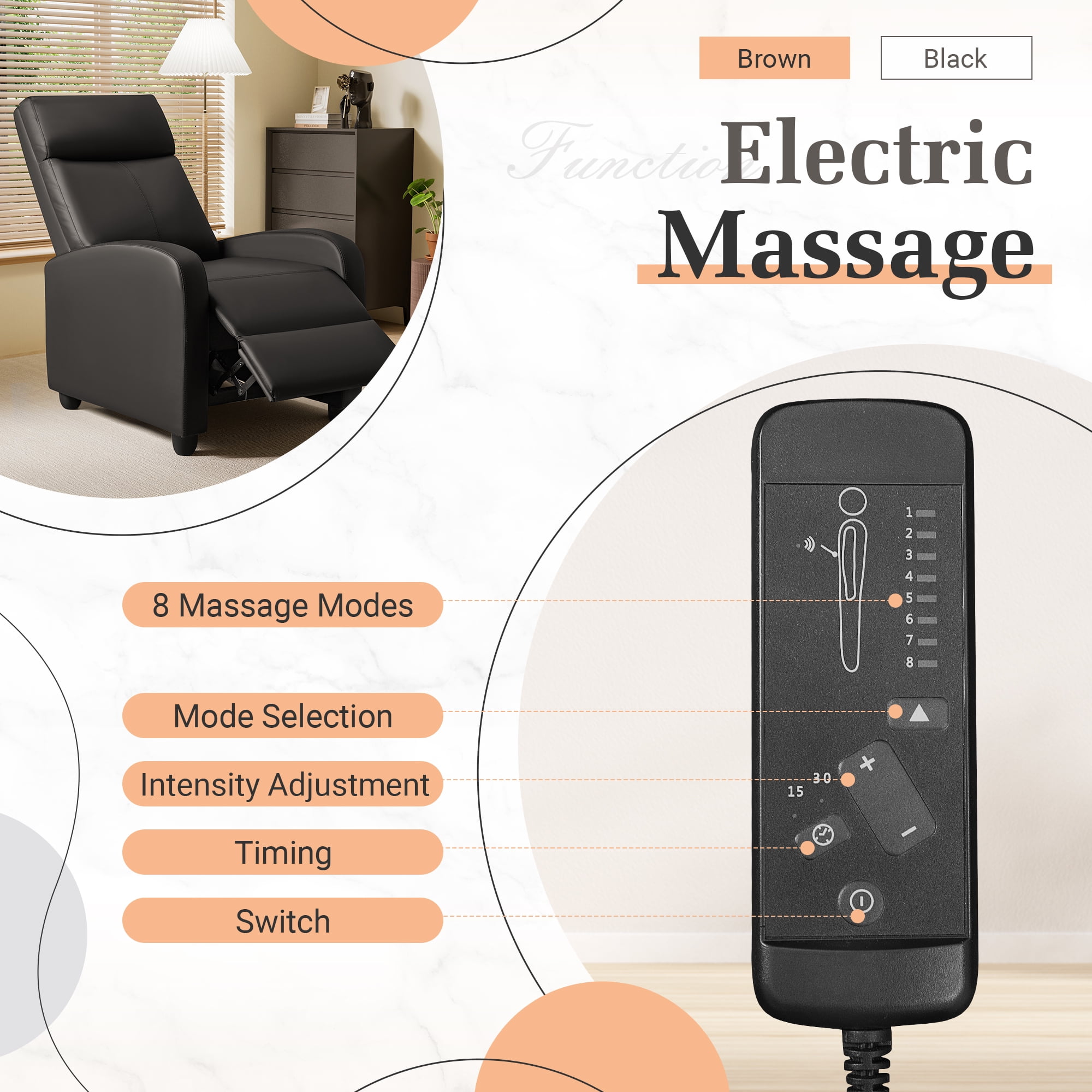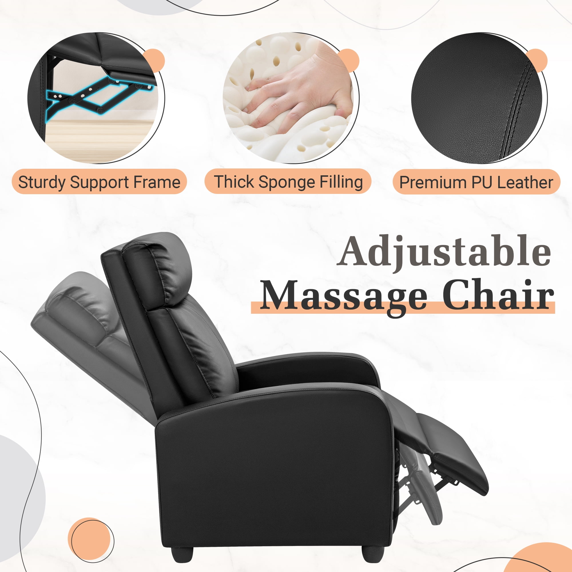 Vineego adjustable massage recliner is made of sturdy composite wood frame, natural soft man-made fiber, high-density foam, and smooth and breathable PU leather cover, which is strong, durable, soft and comfortable, and able to withstand 120 kg of weight. This recliner can be used as a private sofa in your living room, office or bedroom to lighten the load, or as the perfect place to play games, watch movies, TV shows and listen to music while you relax.