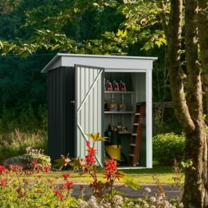Vineego Metal Steel Storage Shed collection is a great choice for outdoor storage. Made from galvanized steel throughout, this sturdy metal shed shed is treated to resist rust and corrosion to keep it looking new after extended use and will protect your outdoor equipment, tools and gardening supplies from all types of inclement weather. The inverted v-shaped roof adds extra storage space while preventing rainwater from collecting and causing rust. The clean, modern look blends perfectly with any exterior design or landscape and can be used as a garden shed, bike shed or tool shed. Use this storage shed outdoors for a variety of outdoor storage needs.