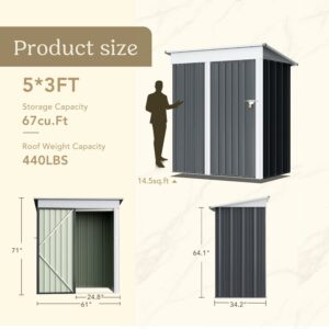 Vineego Metal Outdoor Storage Shed 5FT x 3FT, Steel Utility Tool Shed Storage House with Door and Lock, for Backyard Outdoor Patio,Gray