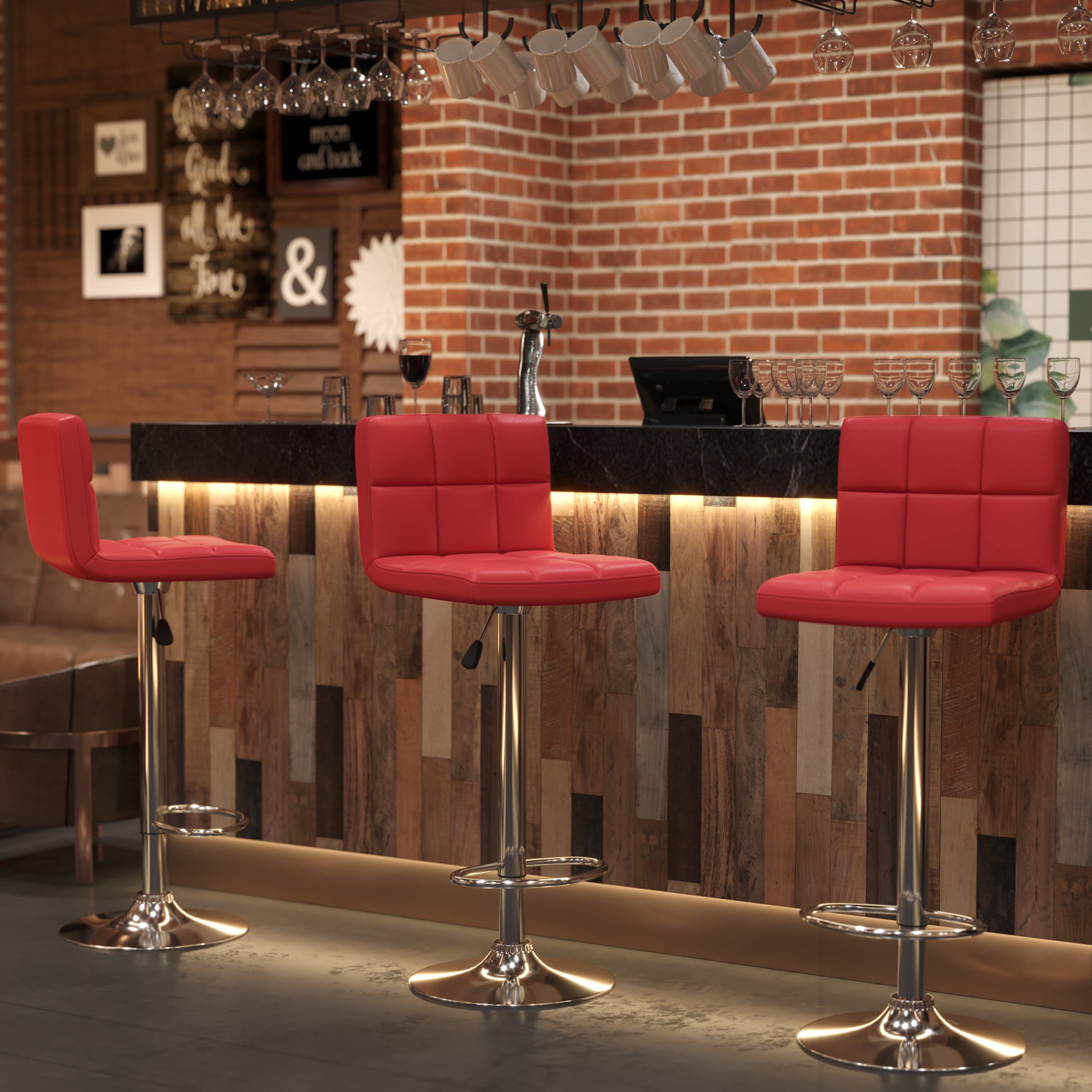 Vineego Stylish and minimalist design makes these bar stools eye-catching enough. The high-density foam seat covered with high-quality polyurethane (PU) leather allows you to sit comfortably. 11 inches of height adjustment range makes it adaptable to various environments, and the large base ensures its safety. Available in 4 different colors to perfectly match any home style, perfect for use at the bar, kitchen, or bar.