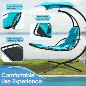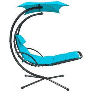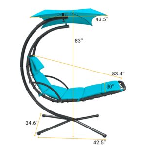 Vineego Outdoor Curved Hanging Chaise Lounge Chair Floating Chaise Lounger Patio Swinging Hammock w/Pillow, Removable Canopy and Steel, Blue