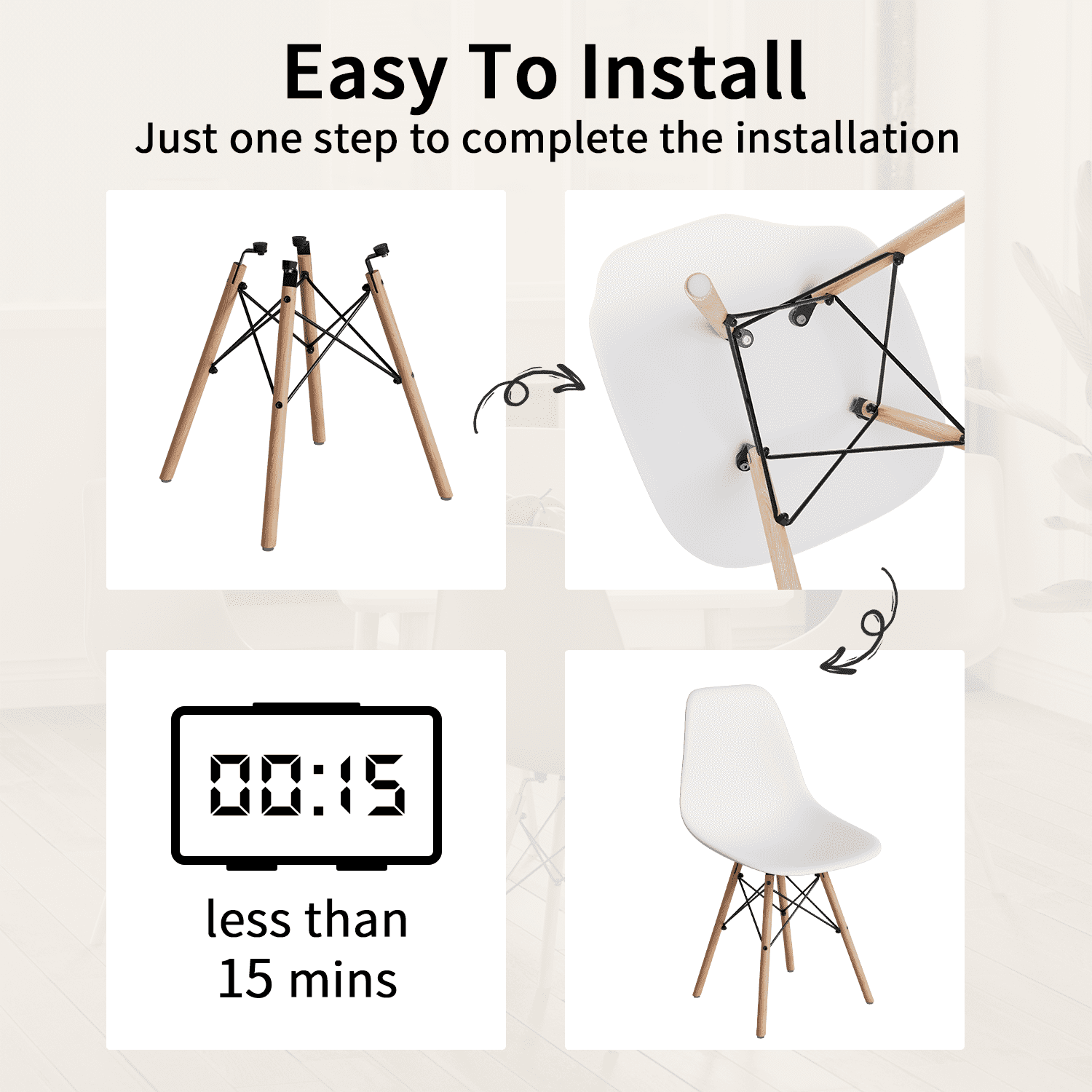Vineego Pre-Assembled Modern Style Dining Chair Mid Century Modern DSW Chair, Shell Casual Plastic Chair,White