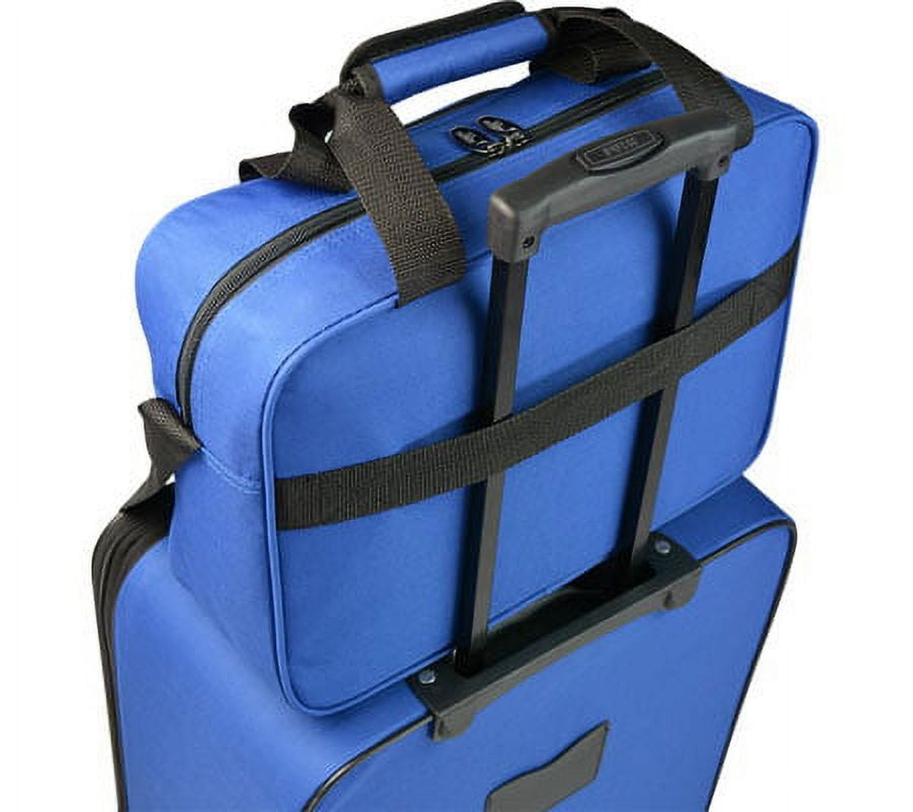 LUGGAGE FEATURES – Push button locking retractable handle system for easy maneuvering. In-line skate wheels for smooth and quiet rolling. Top and bottom carry handles for easy lifting. Expansion gusset increases packing space. Fully lined imprinted interior and tie-down straps Telescoping handle Interior zippered mesh pocket Two convenient front zippered pockets LUGGAGE DETAILS – Set includes: 20-in and 27-in. uprights, wheeled duffel, and tote bag Weight capacity per piece: 50lbs. 1200D Polyester Manufacturer’s 3-year limited warranty. Model no. US08065 LUGGAGE SIZING – 27-in. overall: 27″H x 16″W x 9″D, 7.45lbs. 20-in. overall: 20″H x 13″W x 7″D, 5.1 lbs. Wheeled duffel: 22″W x 12″H x 12″D, 3.55lbs. Tote: 15″W x 11″H x 5″D, 0.9lbs.