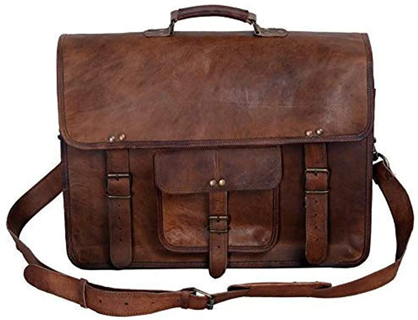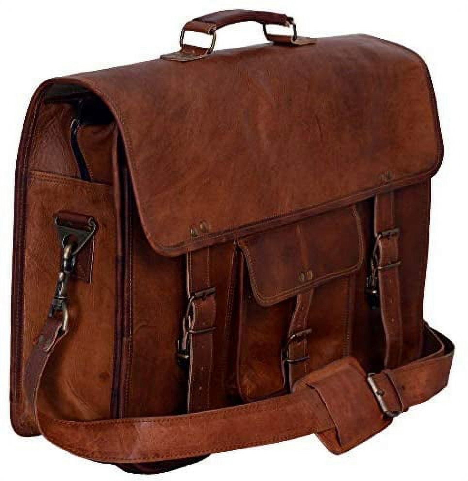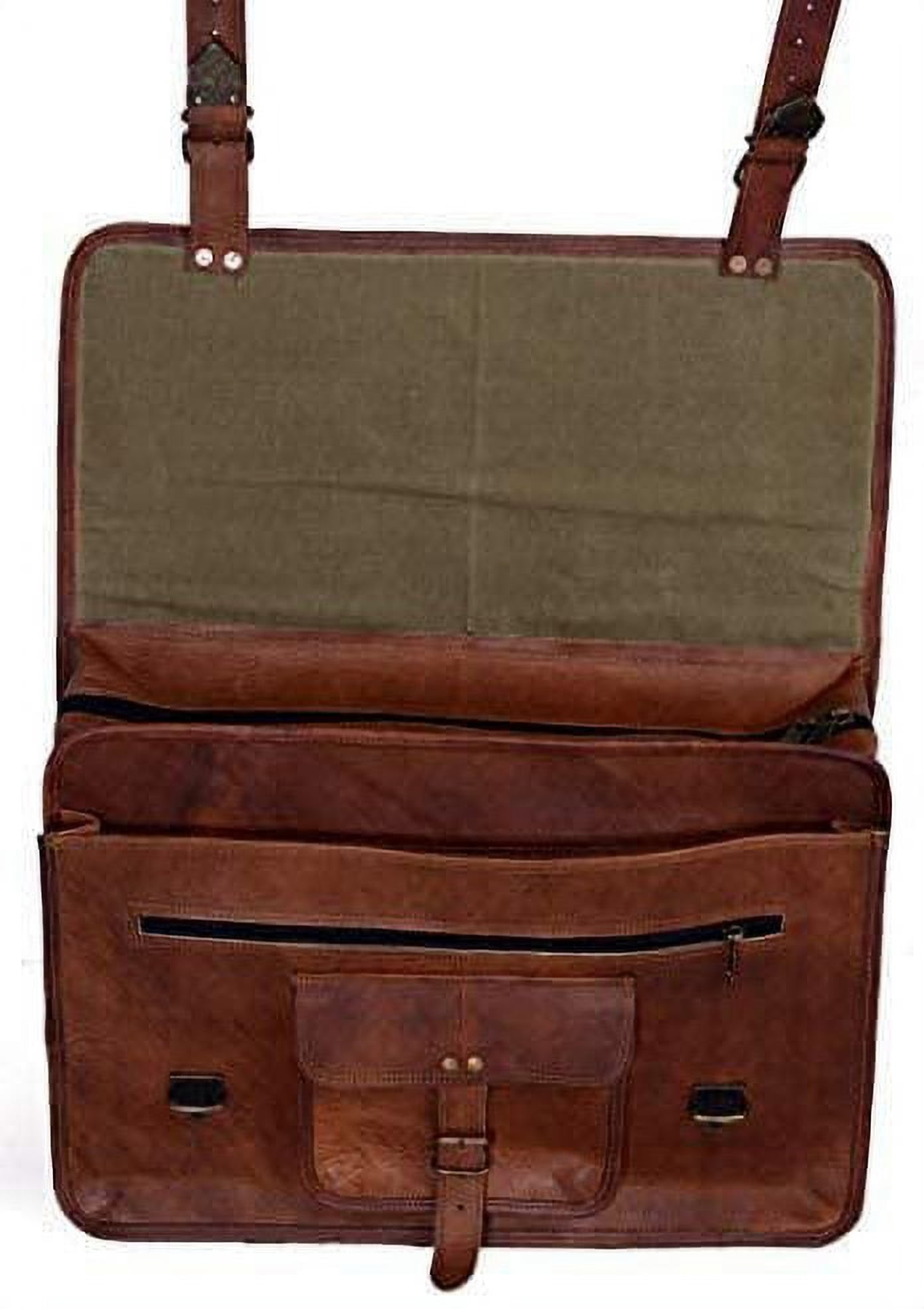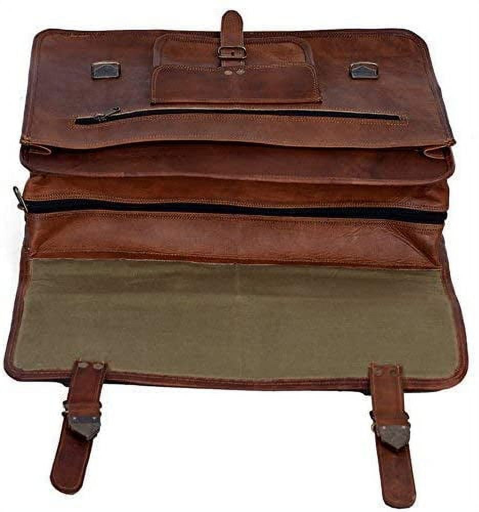 FULL GRAIN LEATHER: Our bags are made from full-grain leather and lined with durable canvas and are Handcrafted by skilled craftsmen CONVENIENCE AND SAFETY: With Concealed locks under the straps our bags are easy and fast to open and lock. Removable and adjustable shoulder strap gives an option to carry as a shoulder bag or a briefcase. With a lockable inner chamber, No need to worry about spilling any contents. STORAGE: With Size 16″ width x 12″ height x 5″ depth ( Fits laptop up to 15.6 inches), with One big pocket in front for files/folders and a small pocket in front for cell phones etc plus 2 zipper pockets including one at the back, this bag fits almost everything you need to carry to office, college, school or even an overnight trip. EVERGREEN SCHOOL BAG DESIGN: Now this is one design which can never go out of style. In addition, this leather as a characteristic age wonderfully with use which makes the bags look vintage and unique PERFECT GIFT: With a multipurpose use and a classy distressed Vintage-inspired look which never goes out of style, This bag is a great gift idea for Fathers Day, Birthdays, Valentines Day, Christmas, Graduation, Back To College Or Any Occasion Which Calls For A Gift. Makes a great gift for professionals, artists, students and all sorts of officials. The bag can be used as a Leather messenger bag for men and women, laptop bags briefcase, college bag, meeting bag, gift idea.