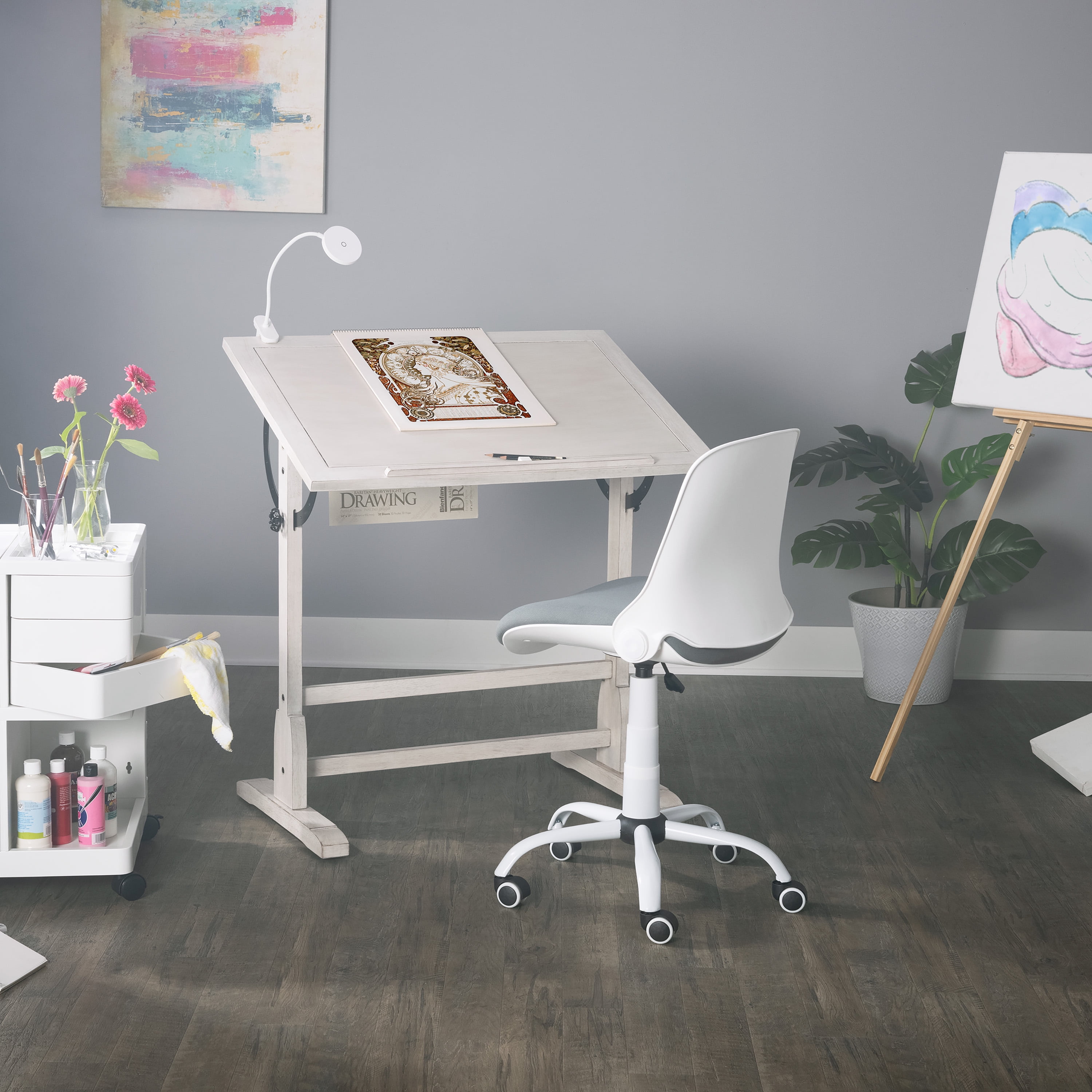 Studio Designs Vintage Solid Wood Drawing/Drafting Table with 36″ x 24″ Angle Adjustable Top in Coastal White