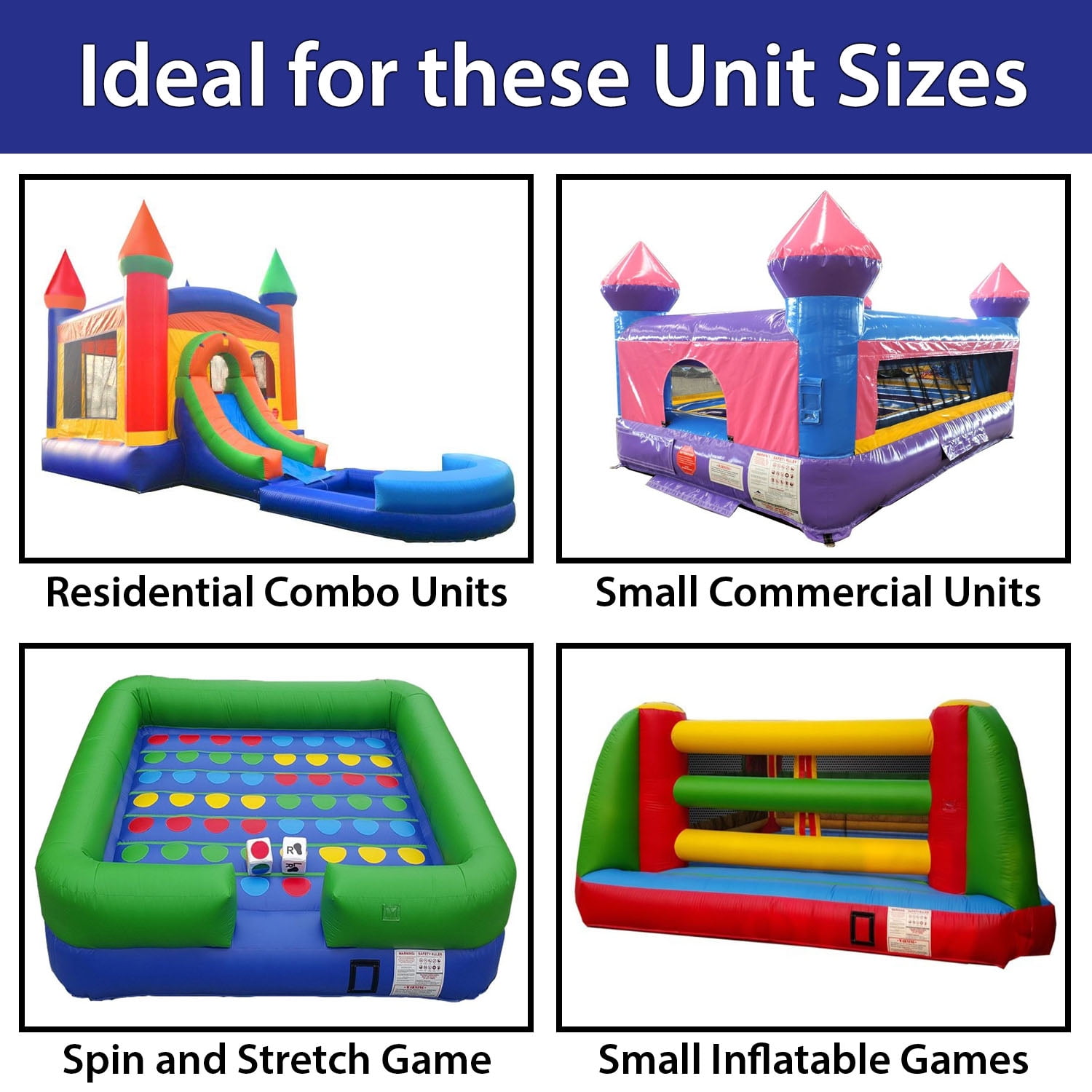 Proper care and maintenance for your commercial inflatable bouncers and water slides is a critical part of preserving it’s durability and longevity. Along with that comes proper storage when the unit is not in use, be it temporarily or long term. Having the right storage bag for your unit can save you money by reducing the need for bounce house repairs from accidental punctures. It can also make cleaning the unit when pulling it from storage faster. These Inflatable Bounce House Storage Bags are the perfect solution for your inflatable storage needs. These vinyl storage bags are great for carrying, transporting, and storing your inflatables. Constructed from heavy-duty commercial-grade vinyl with reinforced seams, these vinyl storage bags were built to last and designed specifically for inflatable bounce houses, inflatable water slides, inflatable games, and inflatable obstacle courses. Help extend the life of your inflatable by properly storing it one of these storage bags! Colors may vary, see sizing recommendations below or in the images for product examples. Sizing Usage: Small – Dimensions: 30″ x 60″ – Ideal for Residential Bounce Houses, Smaller Commercial Bounce houses, Inflatable Twister and all Smaller Inflatable Games Medium – Dimensions: 42″ x 60″- Ideal for Medium size Bouncers and Combos, Slip and Splash slides, Small to Medium Obstacle Courses and all Mid-size Inflatable Games Large – Dimensions: 54″ x 60″- Ideal for Large Inflatable Combos, Large Obstacle Courses, Medium to Large Slides and all Large Inflatable units Extra Large – Dimensions: 75″ x 60″- Ideal for Double Lane Slides and Slip and Splash slides, Large Obstacle Courses and all Extra Large Inflatable units Features: Constructed from heavy duty commercial quality vinyl 2″ seat belt webbing handle straps on both sides for easy portability Reinforced seams Exact colors may vary