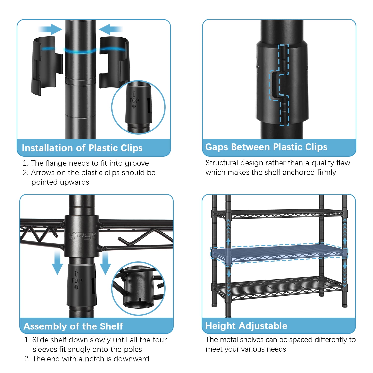 VIPEK Garment Rack Commercial Grade Rack, 4 Tiers Adjustable Wire Shelving Clothing Racks Black