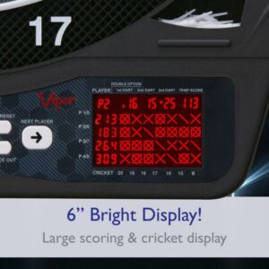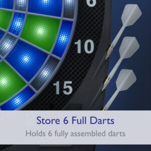 There’s nothing like a game of darts to take your gathering from casual to competitive. The Viper Ion Electronic Dartboard w/ 48 Games provides your bar or rec room with ample entertainment to keep the fun flowing well into the evening. This electronic dartboard has a heavy-duty design with a wide catch-ring border that’s built to stand up to aggressive play night after night, making it a perfect addition to your man cave decor. The scoreboard boasts a thin spider for a board scoring area with blue and green LED details. The electronic design comes with 48 pre-programmed games with over 300 variations, including 17 light-based and moving target games to sharpen your skills and keep your opponents on their toes. Don’t worry about keeping score: the board automatically detects hits so there’s no confusion. 6 starter darts, 6 extra tips, and mounting hardware are all included. Add the Viper Ion Electronic Dartboard w/ 48 Games to your rec room accessories and enjoy hours of head-to-head fun with all your friends.