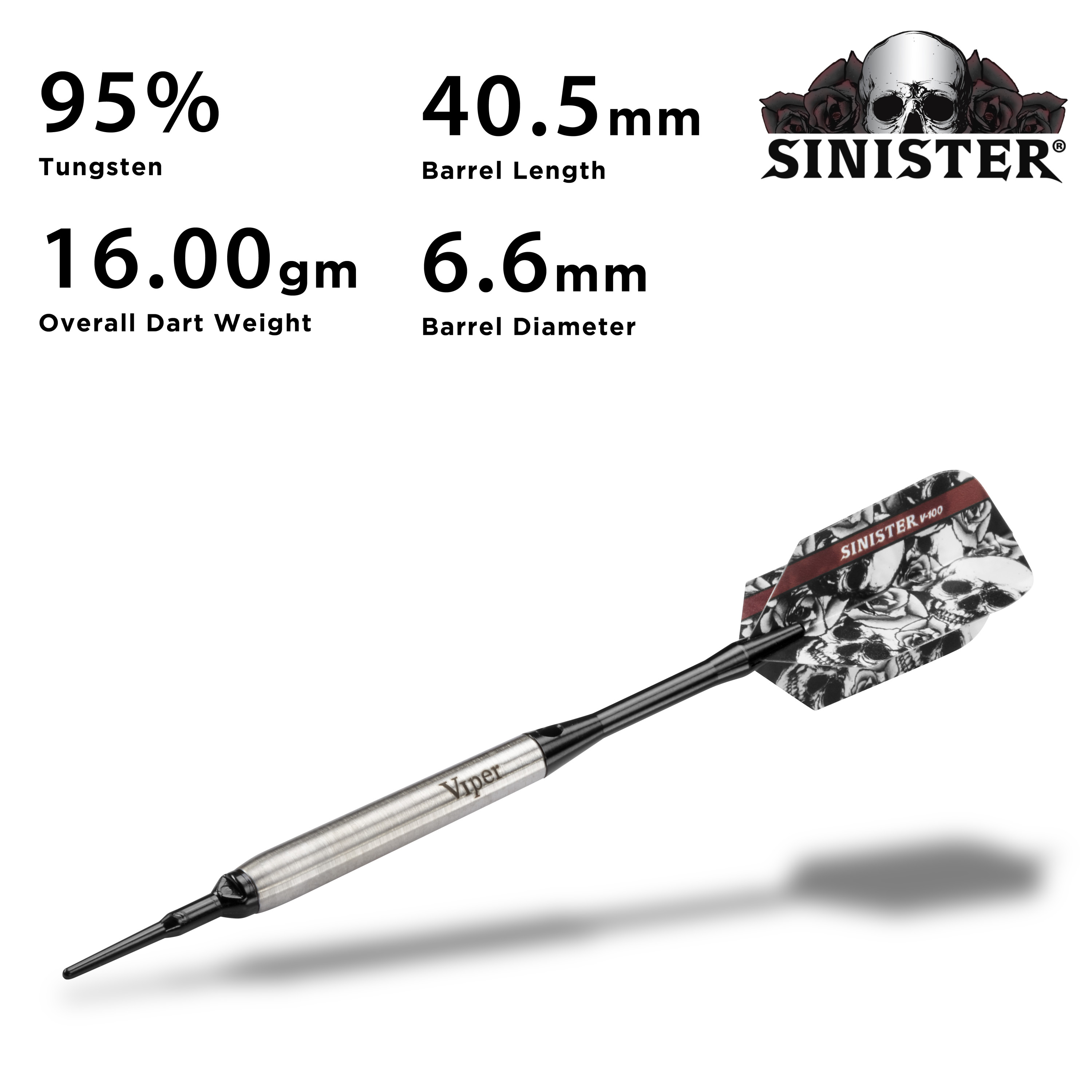 Viper Sinster 95% Tungsten Soft Tip Dart Set, Smooth, 16 Grams