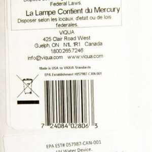 The VIQUA 602806 ultraviolet Lamp is a replacement bulb for the VIQUA E4, E4+, E4-V, E4-V+, E4-50+, IHS22-E4 systems and the discontinued Trojan PRO7 system. Easy to install and maintain with replacement needed every 12 months. Genuine VIQUA replacement part. Safety Note: NEVER look directly at the UV lamp when it is powered on. Follow the instructions carefully to avoid injury to eyes and skin. Annual Lamp Change: After a year, UV light weakens and isn’t strong enough to properly treat your water. Replacing your lamp annually with a genuine VIQUA lamp ensures optimal system performance.