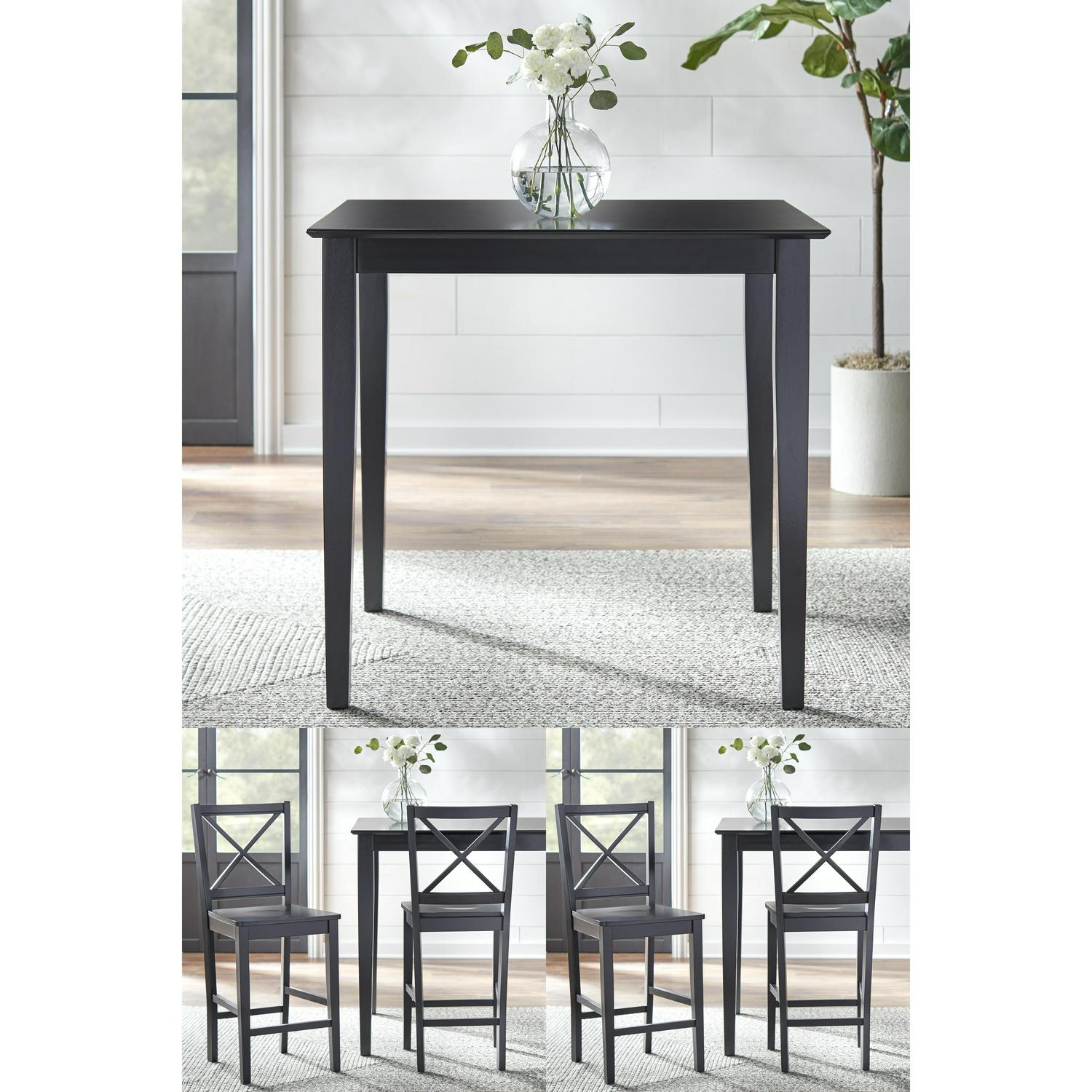 The Virginia 5-Piece Counter-Height Dining Set offers versatility and style for dining rooms with limited space. The attractive black finish adds a touch of minimalist charm for your dining area. This Virginia Dining Set features solid rubberwood construction for durability.
