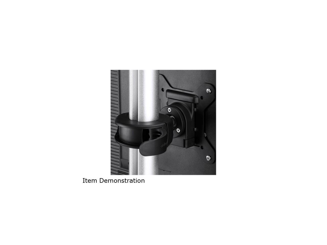 Dual Vertical Freestanding Desk Mount Holds 2 Displays Up To 17″ & 26.5lbs Each Vesa 75 X 75, 100 X 100 Compatible Ball Joint Allows Tilt & Pan Of +/-20deg Both Monitors Can Be Adjusted Independently Using The Quickshift Mechanism Portrait Or Landscape Rotation 16.25″ X 12″ Footprint
