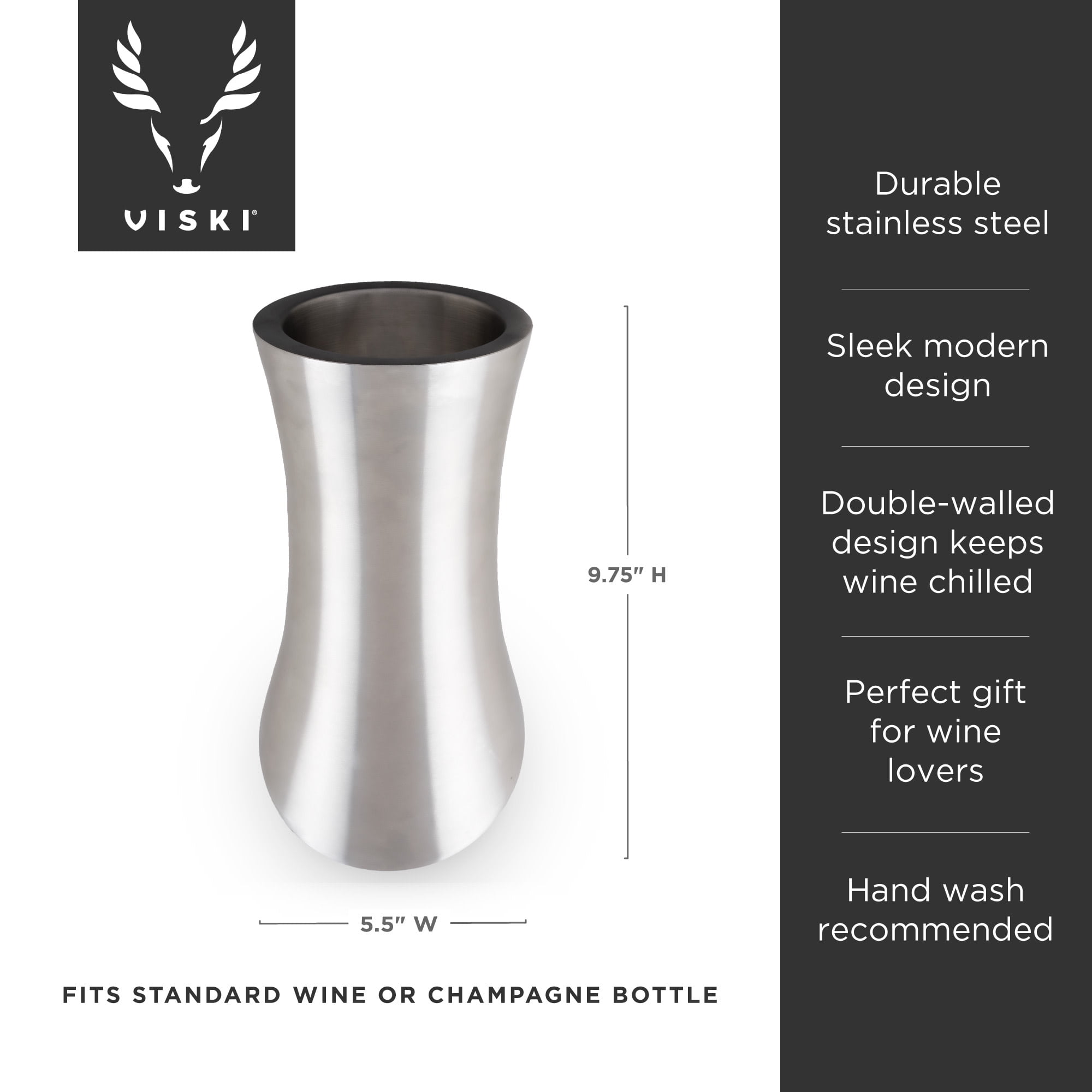 Keeps chilled wine colder for hours – This wine chiller bucket features double-walled construction that insulates chilled bottles, drastically reducing heat transfer and keeping them colder much longer than if they were sitting at room temperature. Double wall wine cooler – Perfectly sized for standard wine bottles or champagne, this wine chiller or champagne chiller keeps wine the perfect temperature. For maximum insulation, chill this single bottle wine chiller in the fridge before adding your chilled bottle. Durable stainless steel bottle chiller – Forget your fragile glass or plastic decorative wine holders and impractical ice buckets. This insulated wine chiller is made of stainless steel with a timeless polished finish that complements your bar tools. Sleek modern look – The minimalist design of this tabletop wine chiller gives it a stylish look. Less bulky than traditional ice buckets or champagne buckets for parties, single bottle wine chillers for bottles are ideal for the modern home. Professional quality barware and glassware – Stunning materials and giftable packaging define our wine and bar accessories and entertaining essentials. We vet our products with our professional bartender community to make sure they look beautiful and work perfectly.