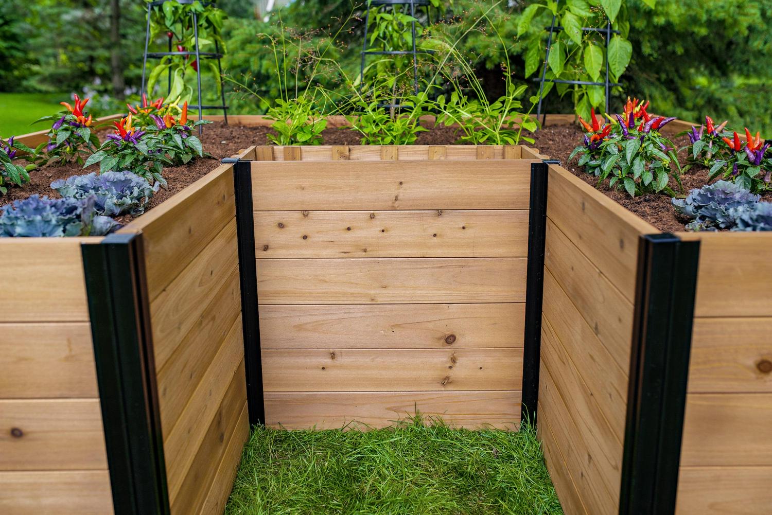 The Mezza 6×6 Keyhole Composting Garden is crafted from beautiful, sustainably sourced FSC cedar and inspired by the African keyhole gardening technique. It s an ingenious system that lets you compost household waste and grow fresh, organic vegetables in the same garden. A central compost basket is used in the Keyhole Garden to conveniently place your daily kitchen scraps. This household waste is then organically transformed into nutrient rich soil that nourishes your vegetables. Compost fed soil better holds moisture and nutrients, while using up to 70% less water. Mezza cedar boards are treated with a warm, distinctive water-based stain that make it safe for the environment and ensure healthy, safe food production. Cedar contains natural preservatives that help it resist insects and decay. Boards slide into posts easily and conveniently, with no need for tools or screws. Our innovative posts make for perfectly modular beds, allowing you to design and configure your own unique garden layout and size. Mezza embraces the timelessness of wood with modern minimalist design. Inspired to Give Back We stumbled upon the Keyhole Garden concept while researching organic gardening methods. This inspired us to create our own series of garden beds using this African gardening technique. This idea was gifted to us by the African people and so we felt compelled to give back. Thrive is a charity determined to end malnutrition in our lifetime. They empower communities with the training and simple tools needed to sustainably grow an abundance of healthy, organic, disease-fighting foods for life. Vita partners with Thrive by financially supporting programs in Africa and around the world. Learn more about how Vita gives back: www.wearevita.com/pages/giving-back Learn more about Thrive: www.thriveforgood.org